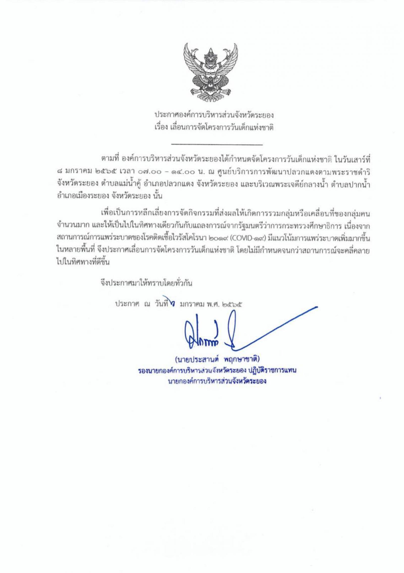 ประชาสัมพันธ์เลื่อนจัดงานวันเด็กแห่งชาติ ปี ๒๕๖๕ แบบไม่มีกำหนด