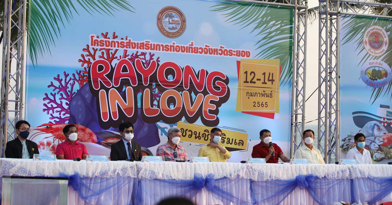 วันที่ 7 กุมภาพันธ์ 2565 เวลา 16.00 น. ณ ลานหินขาว หาดแม่รำพึง อ.เมือง จ.ระยอง นายชาญนะ เอี่ยมแสง ผู้ว่าราชการจังหวัดระยอง นายปิยะ ปิตุเตชะ นายกองค์การบริหารส่วนจังหวัดระยอง พร้อมด้วยคณะผู้บริหาร สมาชิกสภาองค์การบริหารส่วนจังหวัดระยอง, รศ.ดร. วัชรินทร์ กาสลัก อธิการบดีมหาวิทยาลัยบูรพา, นายวัชรพล สารสอน ผู้อำนวยการการท่องเที่ยวแห่งประเทศไทย สำนักงานจังหวัดระยอง, นายทวีป แสงกระจ่าง นายกองค์การบริหารส่วนตำบลตะพง, นายไพรัตน์ อรุณเวสสะเศรษฐ นายกเทศมนตรีตำบลบ้านเพ, นายอานนท์ วงศ์แย้ม ปลัดอำเภอหัวหน้ากลุ่มงานบริหารงานปกครอง รักษาราชการแทน นายอำเภอเมืองระยอง, สภาอุตสาหกรรมท่องเที่ยวระยอง กลุ่มประมงพื้นบ้านและตัวแทนจากหน่วยงานภาคเอกชนอื่นๆ ได้เข้าร่วมงานแถลงข่าว โครงการส่งเสริมการท่องเที่ยวจังหวัดระยอง ภายใต้คอนเซ็ป “Rayong In Love ชวนชิม ริมเล” อย่างพร้อมเพรียงกัน ซึ่งภายในงานแถลงข่าวฯ ได้ให้ผู้เข้าร่วมงานทุกท่านชิมอาหารทะเลฟรี เพื่อสร้างความมั่นใจว่า อาหารทะเลระยอง สด สะอาด ปลอดภัย มั่นใจ กินได้ พร้อมตอบข้อซักถามกับสื่อมวลชน