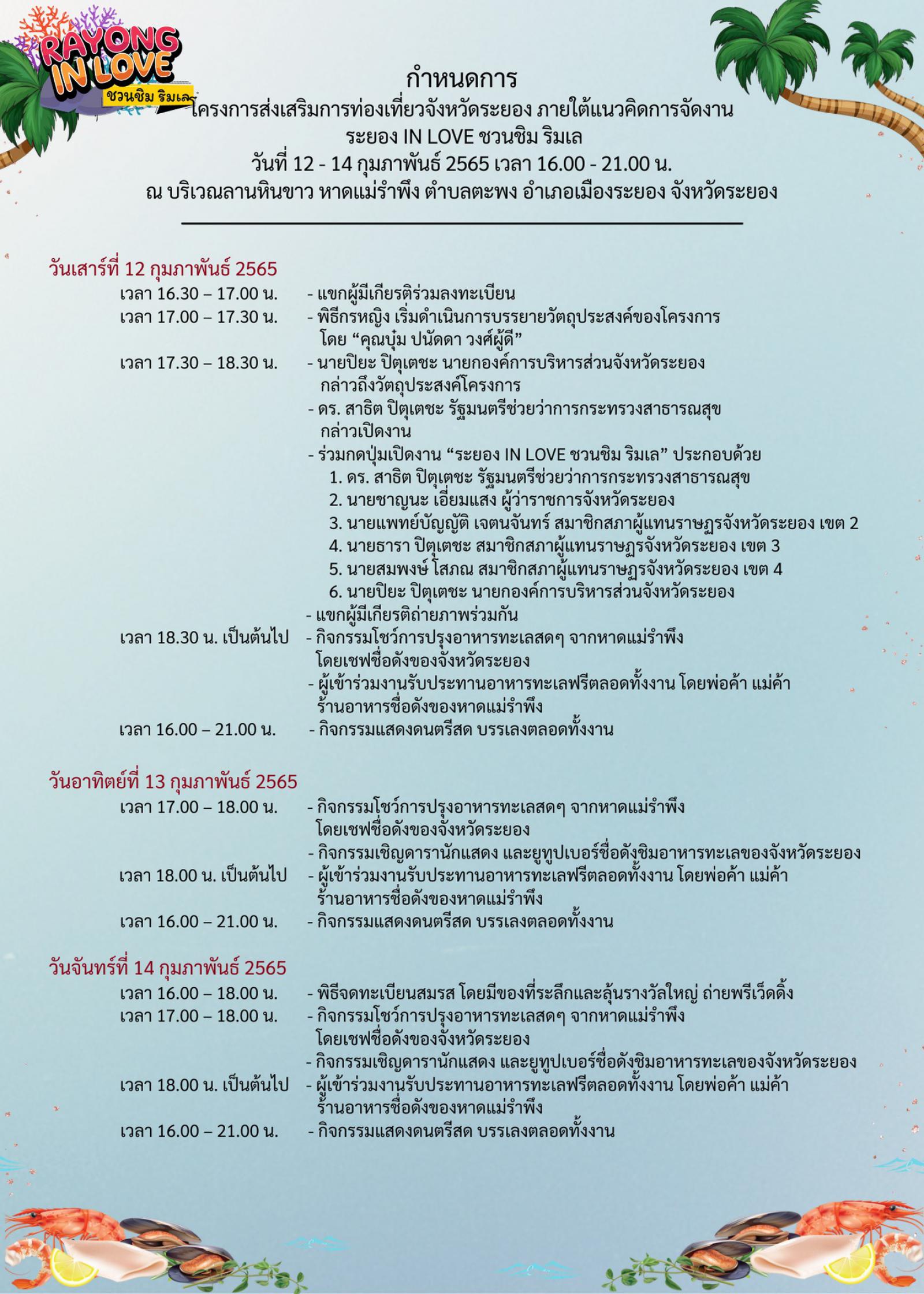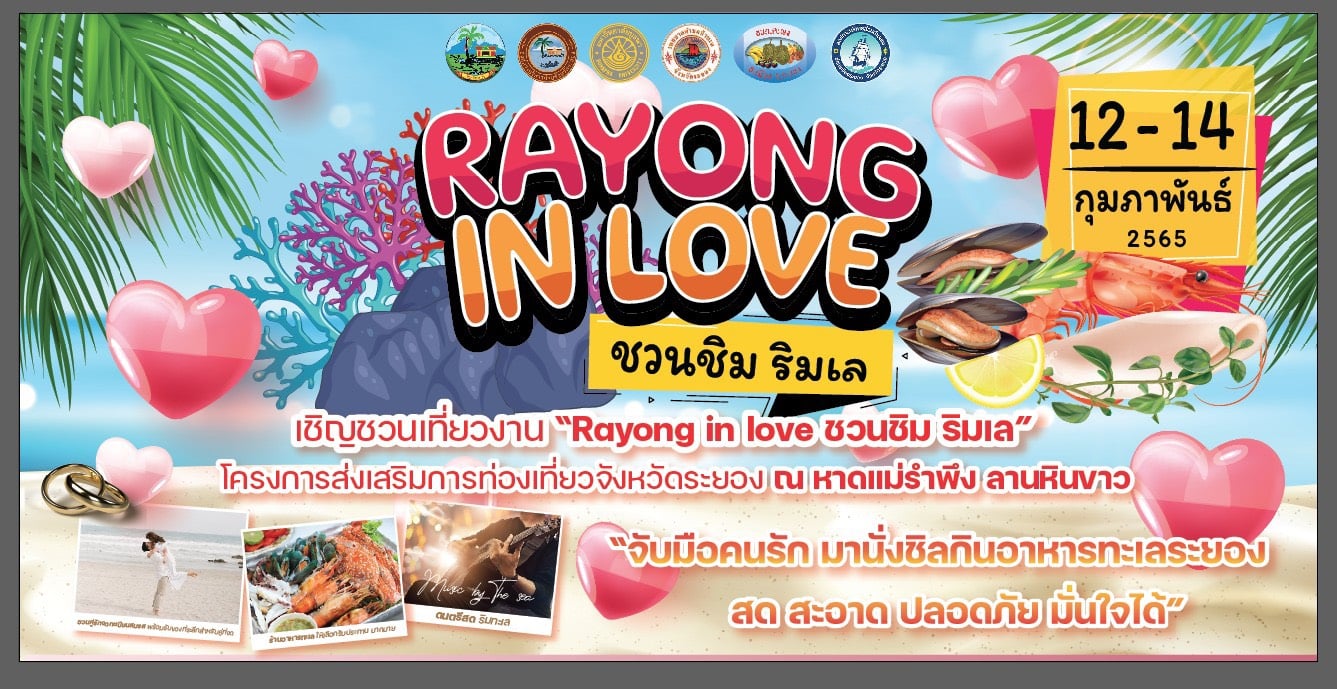 องค์การบริหารส่วนจังหวัดระยอง ขอเชิญชวนเที่ยวงาน “Rayong in love ชวนชิม ริมเล” 12-14 กุมภาพันธ์ 2565