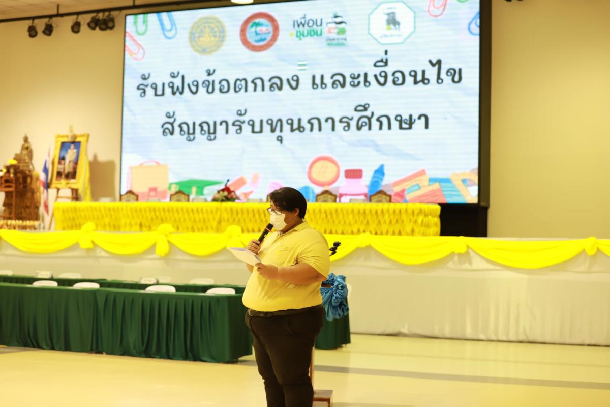 นายปิยะ ปิตุเตชะ ได้ให้โอวาทแก่นิสิตทุนและกล่าวเปิดโครงการฯ ต่อด้วยการลงนามสัญญารับทุนการศึกษา โดยมีนายชัยวัฒน์ฯ, นายสุรินทร์ฯ, นายสรไนยฯ, นายมนชัยฯ และนางสาวบุษกรฯ เป็นสักขีพยาน ร่วมลงนามสัญญาและบันทึกภาพร่วมกัน จากนั้นมีการรับฟังข้อตกลงและเงื่อนไขสัญญารับทุนการศึกษา สัญญาค้ำประกันผู้รับทุนการศึกษา พร้อมทั้งการชดใช้ค่าเสียหายกรณีผิดสัญญารับทุนการศึกษา โดยนิติกรของ อบจ.ระยอง และการรับฟังหน้าที่ความรับผิดชอบของนิสิตทุน โดยนายไพบูลย์ บุญล้อม นักแนะแนวการศึกษาและอาชีพ มหาวิทยาลัยบูรพา ในช่วงท้ายมีกิจกรรม “เปิดรั้ว อบจ.ระยอง สู่เส้นทางบริการสุขภาพ ฟื้นฟู และดูแลผู้สูงอายุจังหวัดระยอง” และการแสดง “รำบายศรีสู่ขวัญ” หลังจบการแสดงมีการผูกข้อมือบายศรีสู่ขวัญให้แก่นิสิตทุน โดยคณะผู้บริหาร อบจ.ระยอง และคณะสมาคมเพื่อนชุมชน เพื่อเป็นขวัญกำลังใจและเป็นสิริมงคล