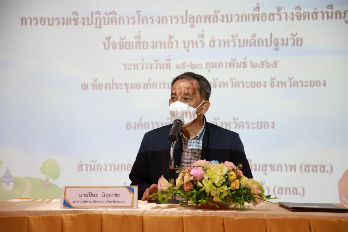 วันที่ 19 กุมภาพันธ์ 2565 เวลา 09.00 น. ณ ห้องประชุม 1 ชั้น 3 องค์การบริหารส่วนจังหวัดระยอง นายปิยะ ปิตุเตชะ นายกองค์การบริหารส่วนจังหวัดระยอง เป็นประธานในพิธีเปิดโครงการพัฒนาครูและบุคลากรทางการศึกษา กิจกรรมปลูกพลังบวกเพื่อสร้างจิตสำนึกภูมิคุ้มกันปัจจัยเสี่ยง เหล้า บุหรี่ สำหรับเด็กปฐมวัย พร้อมด้วย นายประสานต์ พฤกษาชาติ รองนายกองค์การบริหารส่วนจังหวัดระยอง (2), นายมนตรี ชนะชัยวิบูลวัฒน์ ที่ปรึกษานายกองค์การบริหารส่วนจังหวัดระยอง, นางสาวราตรี คุ้มญาติ ผู้อำนวยการกองการศึกษา ศาสนาและวัฒนธรรม และ ผู้เข้าร่วมโครงการดังกล่าวจากโรงเรียนในสังกัดอบจ.ระยอง กว่า 160 คน เข้าร่วมโครงการอย่างพร้อมเพรียง