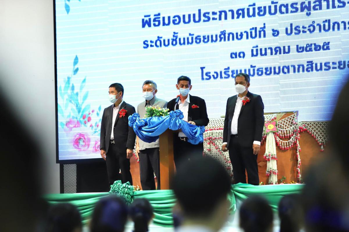 วันที่ 31 มีนาคม 2565 เวลา 13.00 น. ณ หอประชุมชั้น 3 อาคารอเนกประสงค์ โรงเรียนมัธยมตากสินระยอง นายปิยะ ปิตุเตชะ นายกองค์การบริหารส่วนจังหวัดระยอง เป็นประธานมอบประกาศนียบัตร พร้อมด้วย นายประสานต์ พฤกษาชาติ รองนายกองค์การบริหารส่วนจังหวัดระยอง (2) นายมนตรี ชนะชัยวิบูลวัฒน์ ที่ปรึกษานายกองค์การบริหารส่วนระยอง นายแพทย์ชัยวัฒน์ จัตตุพร เลขานุการนายกองค์การบริหารส่วนจังหวัดระยองสมาชิกสภาองค์การบริหารส่วนจังหวัดระยอง นางสุพรรณี สุขสันต์รุ่งเรือง ปลัดองค์การบริหารส่วนจังหวัดระยอง นางสาวราตรี คุ้มญาติ ผอ.กองการศึกษา ศาสนาและวัฒนธรรม มีนางสาววัชราถรณ์ สมพงษ์ผึ้ง ผู้อำนวยการโรงเรียนอนุบาลนานาชาติตากสินระยองรักษาการในตำแหน่ง ผู้อำนวยการ โรงเรียนมัธยมตากสินระยอง เป็นผู้กล่าวรายงาน