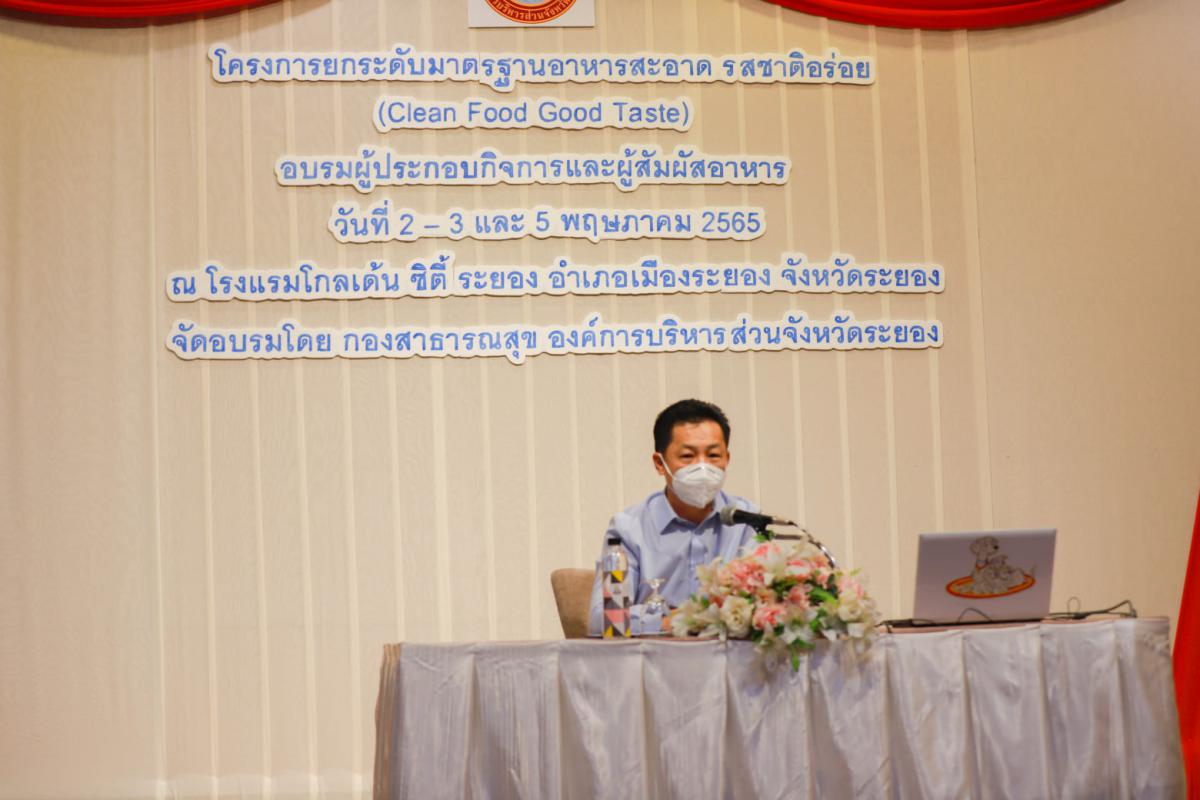 วันที่ 2 พฤษภาคม 2565 เวลา 09.00 น. กองสาธารณสุข อบจ.ระยอง จัดอบรมผู้ประกอบกิจการและผู้สัมผัสอาหาร ตามโครงการยกระดับมาตรฐานอาหารสะอาด รสชาติอร่อย Clean Food Good Taste ณ โรงแรมโกลเด้น ซิตี้ ระยอง โดยมีนายกิตติ เกียรติ์มนตรี รองนายกองค์การบริหารส่วนจังหวัดระยอง เป็นประธานเปิดโครงการอบรมดังกล่าว พร้อมด้วย นายอรุณ วิชกิจ ผู้เชี่ยวชาญพิเศษด้านแผนงานและวิเคราะห์นโยบาย และ ดร.ศุภฤต ขจัตวิชยานุกูล ผอ.สถาบันภาษาไทย-จีน จังหวัดระยอง ให้เกียรติร่วมเปิดโครงการในครั้งนี้ด้วย
