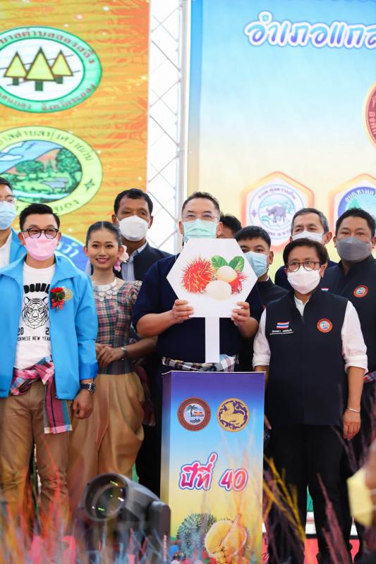 วันที่ 14 พฤษภาคม 2565 เวลา 13.00 น. ณ ตลาดกลางผลไม้เสี่ยไต๋ ปั๊มน้ำมันบางจากไต๋ปิโตรเลียม ตำบลทางเกวียน อำเภอแกลง จังหวัดระยอง องค์การบริหารส่วนจังหวัดระยองร่วมกับอำเภอแกลง จัดงานประเพณีเทศกาลผลไม้ประจำจังหวัดระยอง ประจำปี 2565 “เทศกาลผลไม้และของดีอำเภอแกลง ประจำปี 2565 ปีที่ 40” โดยมี ดร. เฉลิมชัย ศรีอ่อน รัฐมนตรีว่าการกระทรวงเกษตรและสหกรณ์ เป็นประธานในพิธีกล่าวเปิดงานและมอบประกาศนียบัตรแก่ผู้ชนะการประกวดผลไม้ มอบประกาศนียบัตรให้แก่ผู้สนับสนุนการจัดงานเทศกาลผลไม้และของดีอำเภอแกลง ประจำปี 2565 ปีที่ 40 พร้อมด้วย ดร.สาธิต ปิตุเตชะ รมช.สาธารณสุข นายอนันต์ นาคนิยม รองผู้ว่าราชการจังหวัดระยอง นายปิยะ ปิตุเตชะ นายกองค์การบริหารส่วนจังหวัดระยอง นางสาวกานต์จรัส เอียดทองใส นายอำเภอแกลง คณะผู้บริหาร อบจ.ระยอง สมาชิกสภาองค์การบริหารส่วนจังหวัดระยอง และผู้ที่เกี่ยวข้องเข้าร่วมงานอย่างคับคั่ง