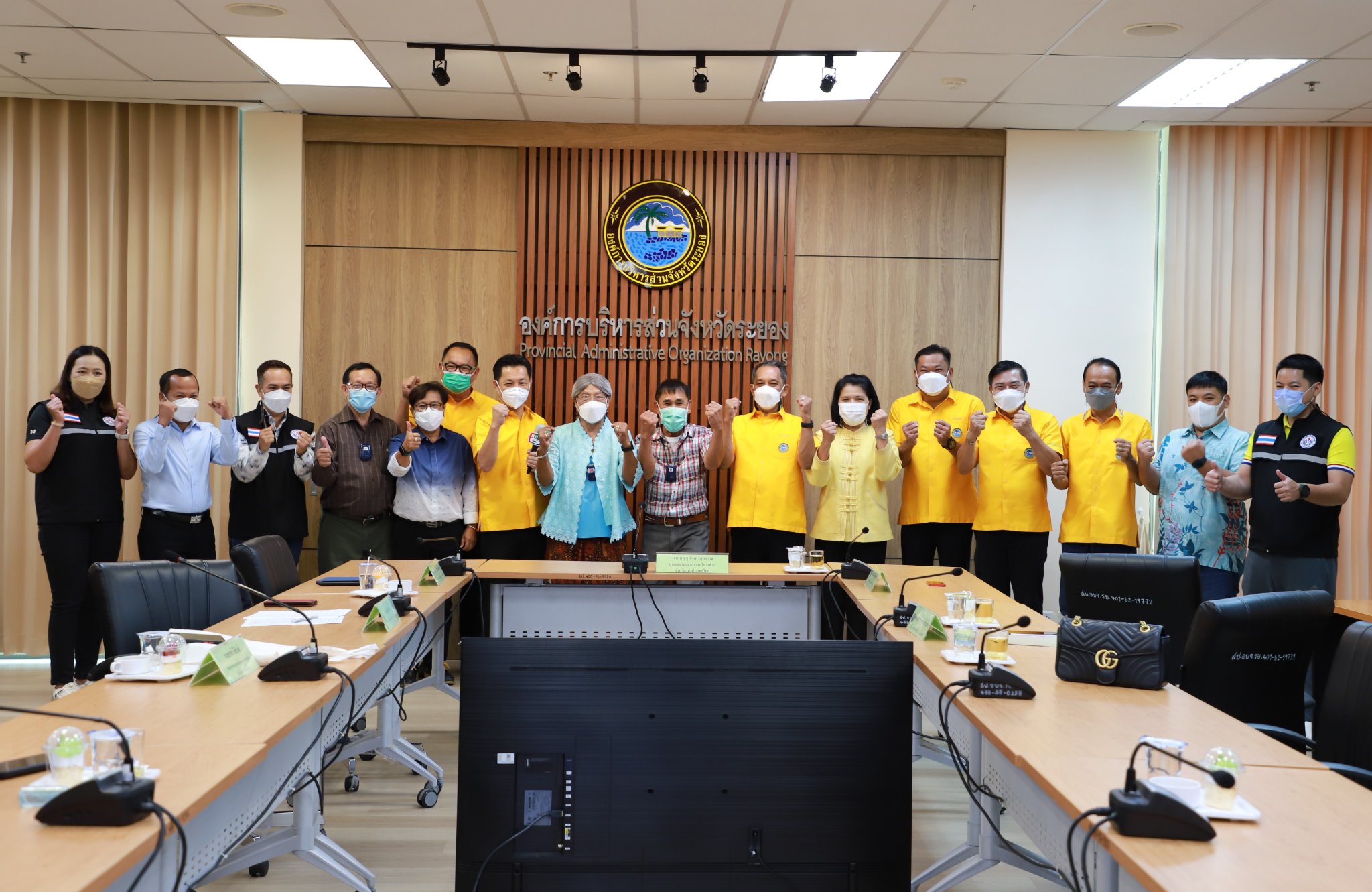 วันที่ 21 พฤษภาคม 2565 เวลา 09.00 น. นายกิตติ เกียรติ์มนตรี รองนายกองค์การบริหารส่วนจังหวัดระยอง (1), นายประสานต์ พฤกษาชาติ รองนายกองค์การบริหารส่วนจังหวัดระยอง (2), นางสุพรรณี สุขสันต์รุ่งเรือง ปลัดองค์การบริหารส่วนจังหวัดระยอง พร้อมด้วย คณะผู้บริหาร และสมาชิกสภาองค์การบริหารส่วนจังหวัดระยอง และผู้ที่เกี่ยวข้องเข้าร่วมให้การต้อนรับคณะศึกษาดูงานจากสมาคมองค์การบริหารส่วนจังหวัดแห่งประเทศไทย นำโดย นายบุญชู จันทร์สุวรรณ นายกสมาคมองค์การบริหารส่วนจังหวัดแห่งประเทศไทย, นายชาตรี สีสันต์ หัวหน้าสำนักงานสมาคมองค์การบริหารส่วนจังหวัดแห่งประเทศไทย พร้อมด้วย คณะจัดทำบันทึกเทปสถานีวิทยุโทรทัศน์กองทัพบก ช่อง 5 HD รายการ ท้องถิ่นไทยเพื่อประชาชน ณ ห้องประชุม 2 ชั้น 3 องค์การบริหารส่วนจังหวัดระยอง