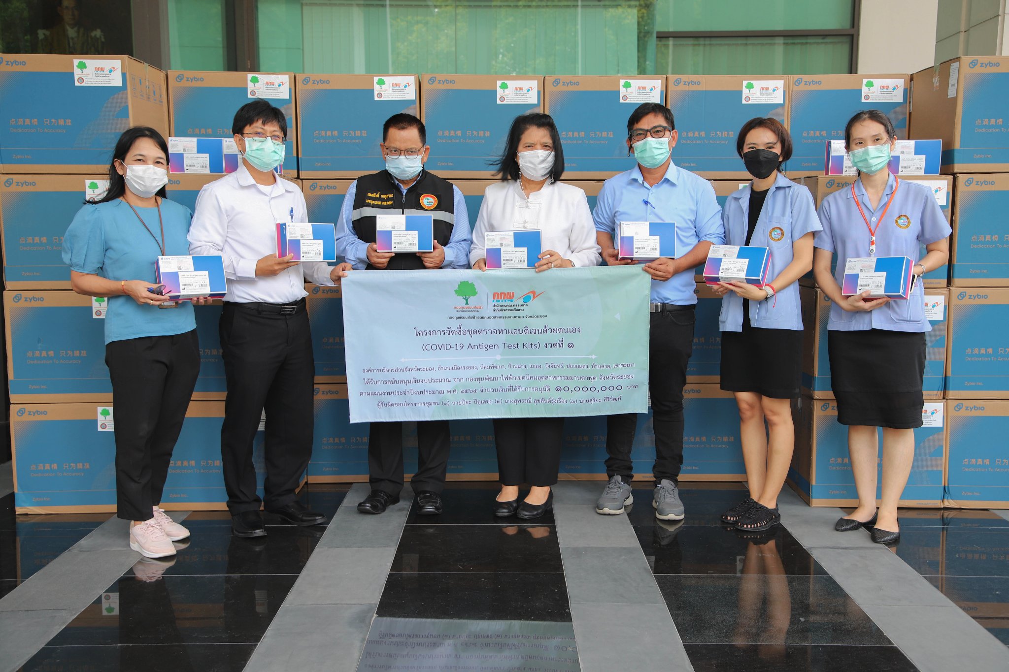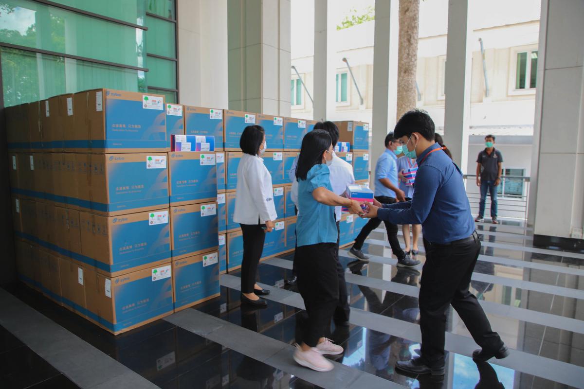 “อบจ.ระยอง ร่วมกับ กองทุนพัฒนาโรงไฟฟ้าเขตนิคมอุตสาหกรรมมาบตาพุดจังหวัดระยอง มอบชุดตรวจ ATK เพื่อป้องกันโควิด-19”