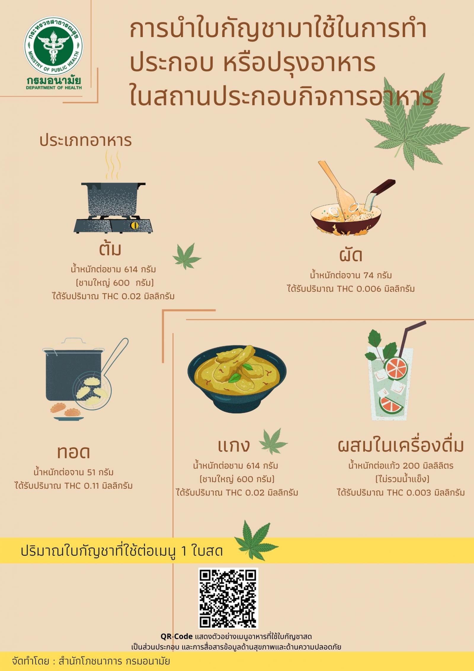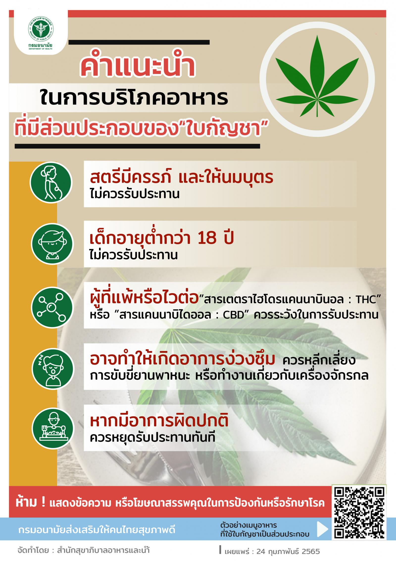 ประกาศอนามัย เรื่องการนำใบกัญชามาใช้ในการทำ ประกอบหรือปรุงอาหารในสถานประกอบกิจการอาหาร พ.ศ.๒๕๖๕