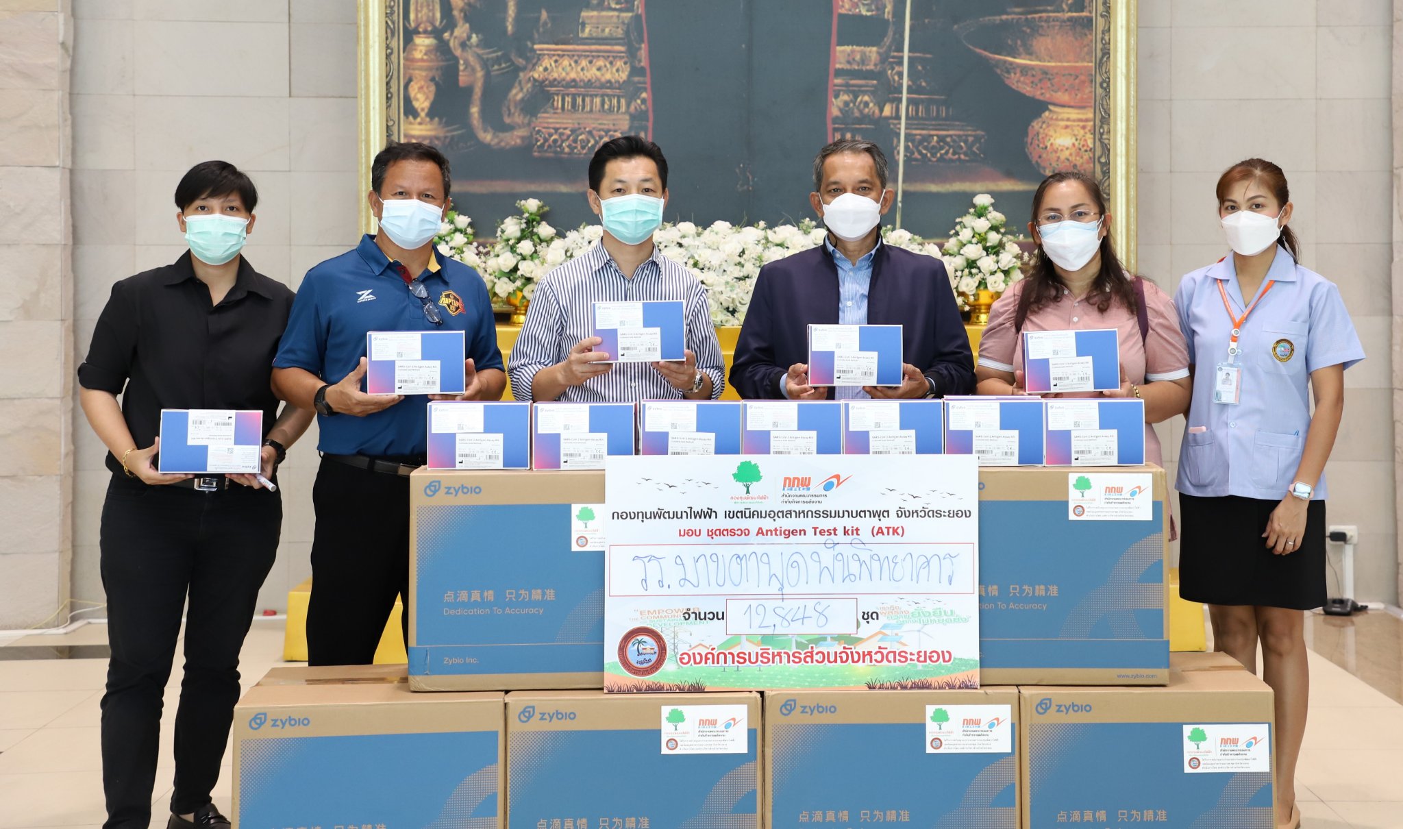 องค์การบริหารส่วนจังหวัดระยองร่วมกับกองทุนพัฒนาไฟฟ้าเขตนิคมอุตสาหกรรม มอบชุดตรวจ ATK ให้กับหน่วยงานราชการในพื้นที่จังหวัดระยอง