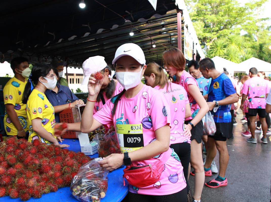 กิจกรรมในครั้งนี้ จัดขึ้นเพื่อเป็นการช่วยเหลือชาวเกษตรกรที่ได้รับผลกระทบจากปัญหาราคาผลไม้ตกต่ำ ให้มีรายได้เพิ่มขึ้น อีกทั้งยังเป็นการส่งเสริมให้ประชาชนหันมาออกกำลังกายเพื่อมีสุขภาพที่ดี ซึ่งภายในงานได้มีการมอบรางวัลกิ๊ฟเซ็ตผลไม้ และเงินรางวัลให้กับผู้ที่ชนะการแข่งขันในรายการต่างๆ และบุฟเฟ่ต์ผลไม้สดๆ จากสวนให้ผู้เข้าร่วมกิจกรรมได้ทานกันแบบไม่อั้น ณ โรงเรียนเฉลิมพระเกียรติสมเด็จพระศรีนครินทร์ ระยอง ต.นาตาขวัญ อ.เมือง จ.ระยอง