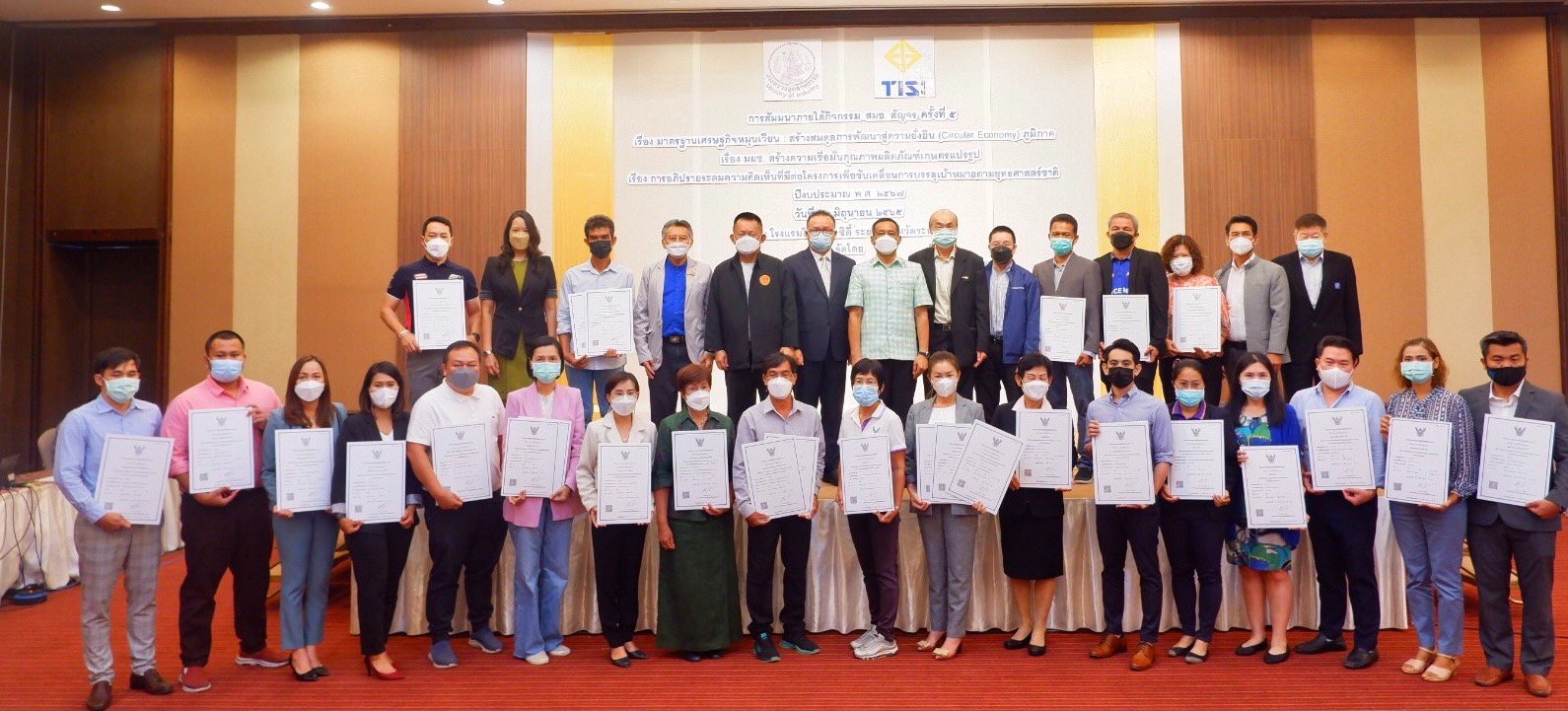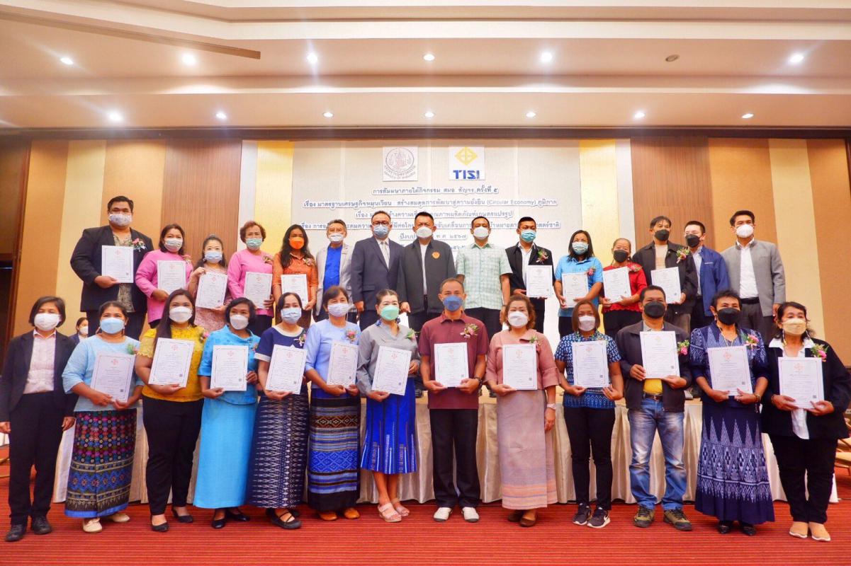 ในการนี้ นายบรรจงฯ ได้มอบใบรับรองมาตราฐานผลิตภัณฑ์ชุมชน(มผช.) ให้แก่ผู้ประกอบ ผู้ผลิตวิสาหกิจชุมชน จำนวน 21 ราย และได้มอบใบรับรองมาตราฐานอุตสาหกรรมเอส(มอก.เอส) ให้แก่ผู้ประกอบการ sme จำนวน 23 ราย ซึ่งอยู่ในเขตพื้นที่ภาคตะวันออกจากนั้น ได้มีการฉายวีดีทัศน์ “ทำไมต้องมีมาตรฐานเศรษฐกิจหมุนเวียน (Circular Economy) และต่อด้วย การปาฐกถาพิเศษเรื่อง “ความจำเป็นของมาตรฐานเศรษฐกิจหมุนเวียน (Circular Economy)” โดย ดร.สมชาย หาญหิรัญ สมาชิกวุฒิสภาหลังจากนั้น ได้มีการบรรยายพิเศษเรื่อง “มาตรฐานเศรษฐกิจหมุนเวียนในบทบาทภาคเอกชน” โดย ดร.ภัทรพร ศรีเดทประสาท บริษัท พีทีทีโกบอล เคมิคอล จำกัด(มหาชน) และ นายธนาชัย ปิยะศรีทอง บริษัท เอสซีจี เคมีคอลส์ จำกัดภายในงานมี ดร.ชวาธิป จินดาวิจักษณ์ ผู้อำนวยการฝ่ายอาวุโสฝ่ายบริการด้านการพัฒนาอย่างยั่งยืน สถาบันรองรับมาตรฐานไอเอสโอ,ดร.นันท์ บุญยชาติ ผู้แทนกรมอุตสาหกรรมพื้นฐานและการเหมืองแร่, นายสุนทร เหรียญภูมิการกิจ นายแพทย์สาธารณสุขจังหวัดระยอง, นายพุทธิกรณ์ วิชัยดิษฐ อุตสาหกรรมจังหวัดระยอง,อุตสาหกรรมจังหวัดในเขตพื้นที่ภาคตะวันออกทั้ง 8 จังหวัด ได้แก่ ระยอง ชลบุรี ฉะเชิงเทรา ปราจีนบุรี จันทบุรี ตราด นครนายก สระแก้ว,นางมาริน สมคิด เกษตรจังหวัดระยอง,ผู้บริหาร บริษัท ปตท. จำกัด(มหาชน),ผู้บริหาร บริษัท เอสซีจี เคมิคอลส์ จำกัด,หัวหน้าส่วนราชการใน จ.ระยอง,ผู้แทนภาครัฐ/ภาคเอกชน,ผู้ประกอบการทั้ง 8 จังหวัดในเขตภาคตะวันออก, คณาจารย์และนักศึกษาวิทยาลัยเทคโนโลยีไออาร์พีซีและสื่อมวลชนจำนวน 300 คน