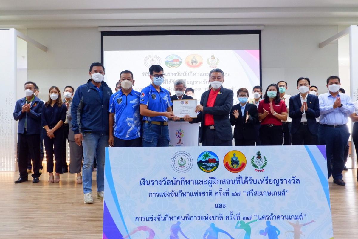 นางสาวอุมา วิภูษณะ ปฏิคมสมาคมกีฬาจังหวัดระยองนายหมอขวด เหล็กเพ็ชร อุปนายกสมาคมกีฬาจังหวัดระยองเป็นพิธีกรดำเนินงานจังหวัดระยองได้ส่งนักกีฬาและผู้ฝึกสอนเข้าร่วมการแข่งขันกีฬาแห่งชาติ ครั้งที่ 47 "ศรีสะเกษเกมส์" ระหว่างวันที่ 5-25 มีนาคม 2565 และการแข่งขันกีฬาคนพิการแห่งชาติ ครั้งที่ 37 "นครลำดวนเกมส์" ระหว่างวันที่ 30 มีนาคม - 3 เมษายน 2565 ณ สนามกีฬากลางจังหวัดศรีสะเกษ โดยการแข่งขันได้เสร็จสิ้นลงแล้วและได้ผลการแข่งขันดังนี้ การแข่งขันกีฬาแห่งชาติ ครั้งที่ 47 "ศรีสะเกษเกมส์" จำนวน 4 เหรียญทอง 16 เหรียญเงิน และ 9 เหรียญทองแดง รวม 29 เหรียญ การแข่งขันกีฬาคนพิการแห่งชาติ ครั้งที่ 37 "นครลำดวนเกมส์" จำนวน 1 เหรียญทอง 1 เหรียญเงิน และ 2 เหรียญทองแดง รวม 4 เหรียญผู้ว่าราชการจังหวัดระยองและคณะกรรมการพัฒนากีฬาจังหวัดระยองได้มอบเงินรางวัลเพื่อเป็นการสร้างขวัญและกำลังใจให้แก่นักกีฬาและผู้ฝึกสอนที่สร้างชื่อเสียงให้กับจังหวัดระยอง และมูลนิธิเพื่อการพัฒนาจังหวัดระยอง ซึ่งได้รับเงินสนับสนุนจากหน่วยงานทั้งภาครัฐและภาคเอกชน เป็นเงินทั้งสิ้น 360,450 บาท ตามหลักเกณฑ์ในระเบียบของมูลนิธิเพื่อการพัฒนากีฬาจังหวัดระยองทั้งนี้ ผู้ว่าราชการจังหวัดระยองได้กล่าวมอบนโยบายการพัฒนาการกีฬาของจังหวัดระยองทั้งนักกีฬาและผู้ฝึกสอนและกล่าวมอบโอวาทและให้กำลังใจแก่นักกีฬาและผู้ฝึกสอนรวมทั้งกลุ่มบริษัทและภาคเอกชนที่เป็นกำลังหลักแก่จังหวัดระยองในการสนับสนุนเงินรางวัลแก่นักกีฬาและผู้ฝึกสอนก่อนการบันทึกภาพร่วมกัน