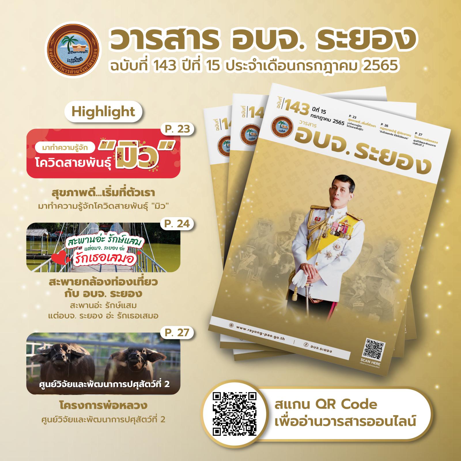 วารสารองค์การบริหารส่วนจังหวัดระยอง ปีที่ ๑๕ ฉบับที่ ๑๔๓ ประจำเดือนกรกฎาคม พ.ศ.๒๕๖๕ (E-Book)