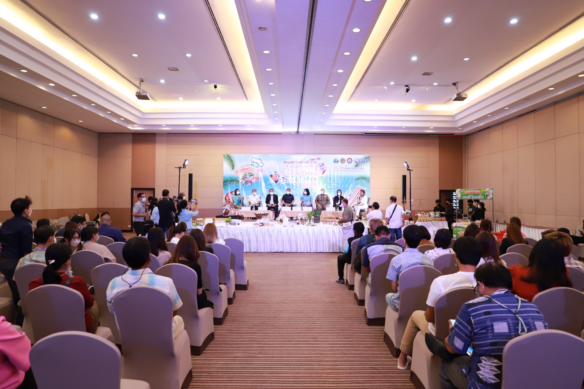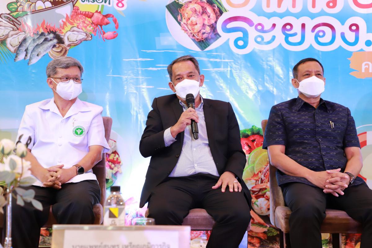 วันที่ 17 สิงหาคม 2565 เวลา 17.00 น. ณ ห้องสร้อยทอง โรงแรมโกลเด้นซิตี้ ระยอง อ.เมือง จ.ระยอง ว่าที่ร้อยตรีพิรุณ เหมะรักษ์ รองผู้ว่าราชการจังหวัดระยอง เป็นประธานงานแถลงข่าว พร้อมด้วย นายประสานต์ พฤกษาชาติ รองนายกองค์การบริหารส่วนจังหวัดระยอง (2), นางสาวสุวีรยา ปั้นปาน พาณิชย์จังหวัดระยอง, นางสาวธิชยา ชินศิรประภา รองประธานหอการค้าจังหวัดระยอง, พ.ต.อ.อภิชนัน วัฒนาวรางกูล ผู้กำกับการสถานีตำรวจภูธรเมืองระยอง, นายแพทย์สุนทร เหรียญภูมิการกิจ นายแพทย์สาธารณสุขจังหวัดระยอง, นางปิยะดา ควรหา ประธานชมรมผู้ประกอบการร้านอาหารจังหวัดระยอง และผู้ที่เกี่ยวข้องเข้าร่วมงานแถลงข่าวการจัดงาน “เทศกาลอาหารอร่อย ระยอง…ฮิ” ครั้งที่ 8 โดยพร้อมเพรียงกัน