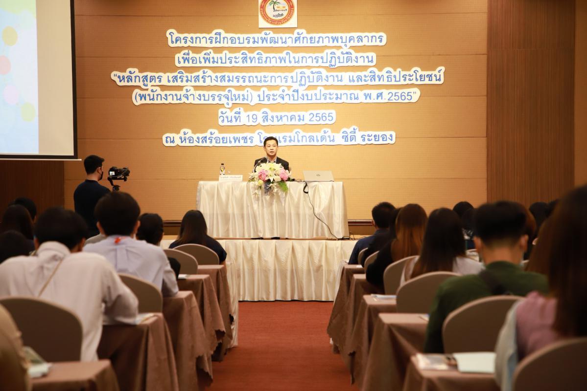 วันที่ 19 สิงหาคม 2565 เวลา 09.00 น. องค์การบริหารส่วนจังหวัดระยอง จัดโครงการฝึกอบรมพัฒนาศักยภาพบุคลากรเพื่อเพิ่มประสิทธิภาพในการปฏิบัติงาน “หลักสูตร เสริมสร้างสมรรถนะการปฏิบัติงาน และสิทธิประโยชน์ (พนักงานจ้างบรรจุใหม่) ประจำปีงบประมาณ พ.ศ. 2565” โดยมีนายกิตติ เกียรติ์มนตรี รองนายกอบจ.ระยอง (1) เป็นประธานเปิดโครงการฯ พร้อมด้วย หัวหน้าส่วนราชการ พนักงานจ้าง และเจ้าหน้าที่ที่เกี่ยวข้อง รวมจำนวน 220 คน เข้าร่วมโครงการฯกันอย่างพร้อมเพรียง ณ ห้องสร้อยเพชร โรงแรมโกลเด้น ซิตี้ ระยอง ซึ่งการจัดโครงการฯในครั้งนี้เพื่อให้พนักงานจ้างในสังกัดอบจ.ระยองที่บรรจุใหม่ในปีงบประมาณ พ.ศ. 2565 ได้รับทราบเกี่ยวกับสิทธิประโยชน์และสวัสดิการที่พึงได้รับจากประกันสังคม และเสริมสร้างสมรรถนะในการปฏิบัติงานด้านการสื่อสาร การทำงานเป็นทีม และการสร้างความสัมพันธ์อันดีภายในองค์กร