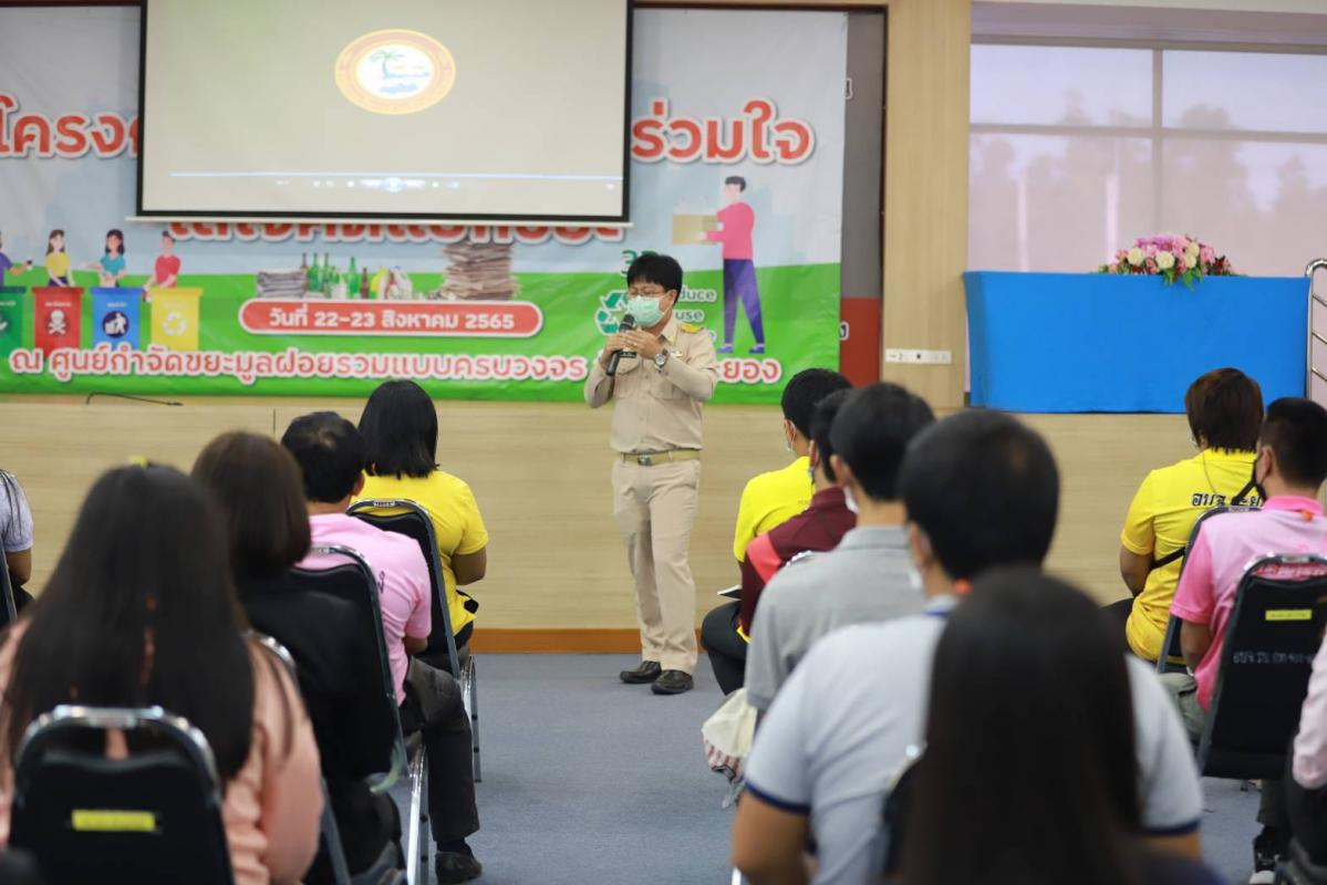 วันที่ 23 สิงหาคม 2565 เวลา 09.00 น. นายสุริยะ ศิริวัฒน์ รก.ผอ.กองสาธารณสุข เปิดโครงการ "อบจ.ระยอง ร่วมใจ ใส่ใจคัดแยกขยะ" รุ่นที่ 2 ณ ศูนย์กำจัดขยะมูลฝอยแบบครบวงจร จังหวัดระยอง ซึ่งมีผู้เข้าร่วมโครงการฯ จำนวน 50 คน พร้อมกันนี้ได้รับเกียรติจากคุณอัษฎา สวนมา เจ้าหน้าที่กิจการเพื่อสังคมและชุมชนสัมพันธ์ และทีมวิทยากรจากบริษัท ไออาร์พีซี จำกัด (มหาชน) มาให้ความรู้เรื่องการคัดแยกขยะจากต้นทางและนำขยะไปใช้ประโยชน์ได้อย่างถูกต้อง