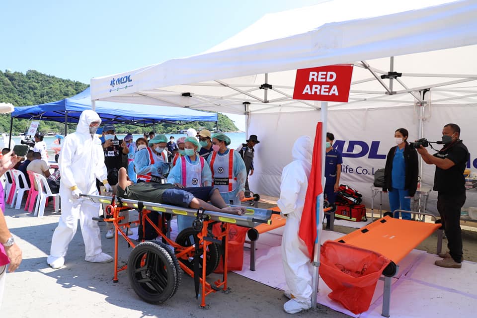 วันที่ 1 กันยายน 2565 เวลา 13.30 น. บริเวณบ้านก้นอ่าว หาดแม่รำพึง ต.ตะพง จ.ระยอง ดร.สาธิต ปิตุเตชะ รัฐมนตรีช่วยว่าการกระทรวงสาธารณสุข เป็นประธาน เปิดการฝึกซ้อมแผนปฏิบัติการในภาวะฉุกเฉิน ตามโครงการพัฒนาระบบบัญชาการเหตุการณ์ในสถานการณ์ฉุกเฉิน (Incident Command System : ICS) โดยมี นายประสานต์ พฤกษาชาติ รองนายกองค์การบริหารส่วนจังหวัดระยอง กล่าวรายงานวัตถุประสงค์การจัดงานเลขาธิการสถาบันการแพทย์ฉุกเฉินแห่งชาติ, ผู้บัญชาการทัพเรือภาคที่ 1, หัวหน้าป้องกันและบรรเทาสาธารณภัยจังหวัดระยอง, หัวหน้าอุทยานแห่งชาติเขาแหลมหญ้า - หมู่เกาะเสม็ด, นายแพทย์สาธารณสุขจังหวัดระยอง, ผอ.โรงพยาบาลระยอง รวมทั้งหน่วยงานที่เกี่ยวข้อง เข้าร่วมการฝึกซ้อมแผนฯ กันอย่างพร้อมเพรียง