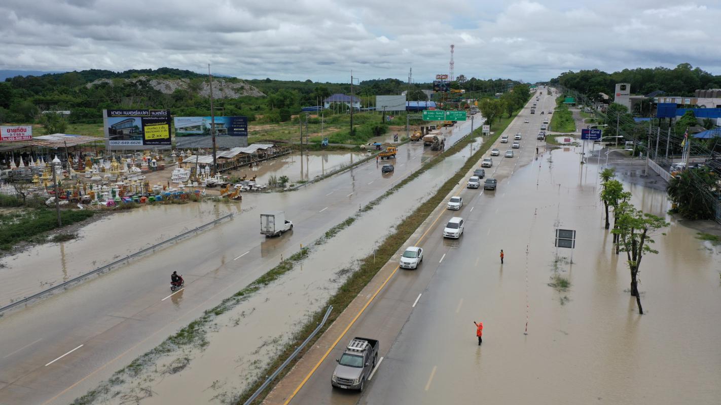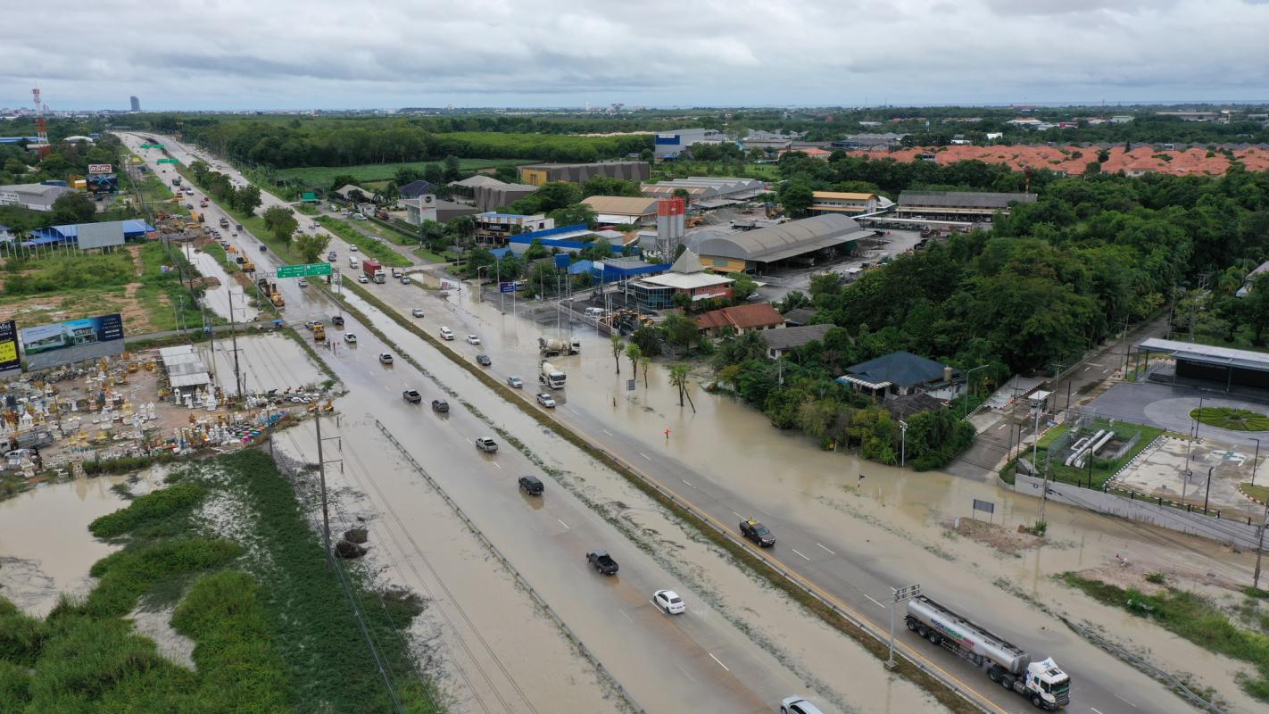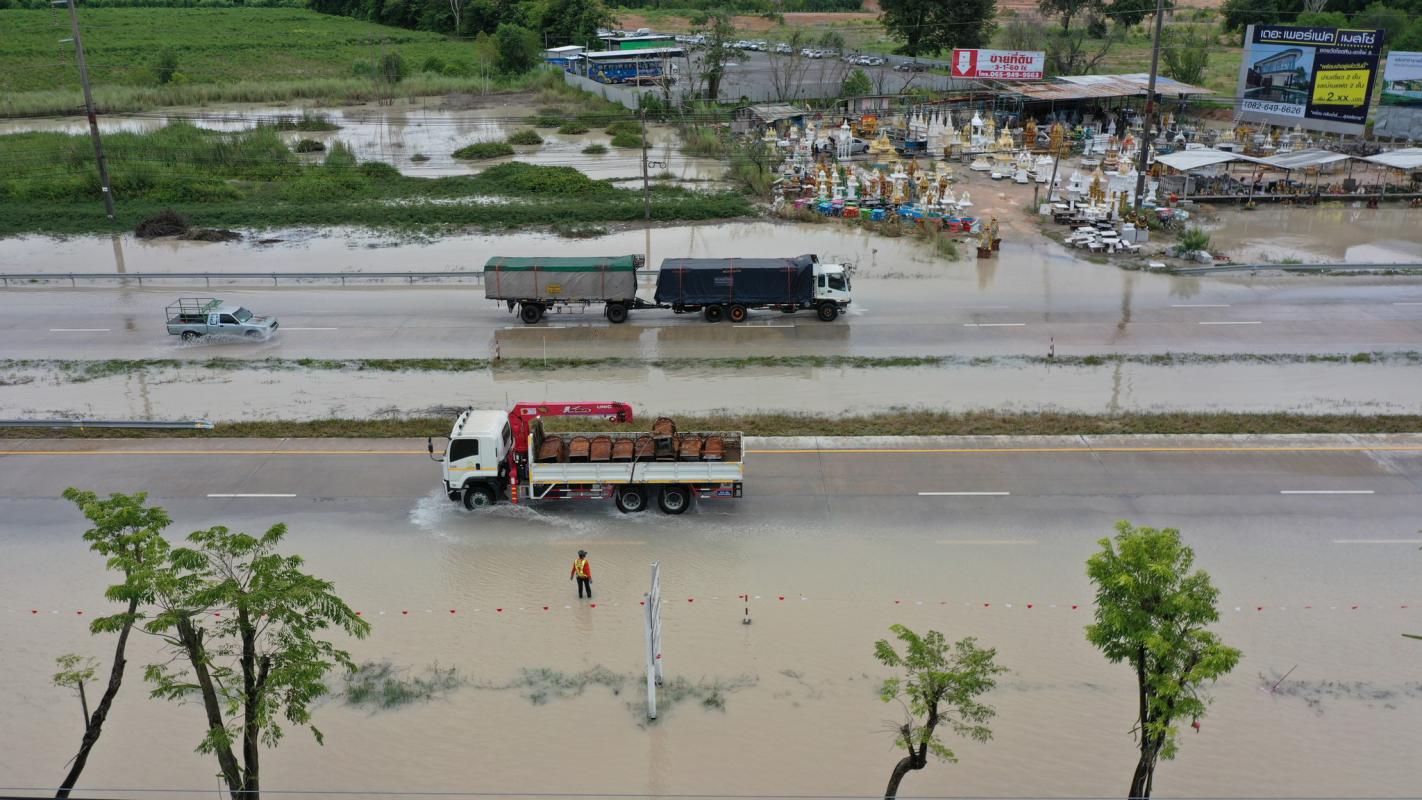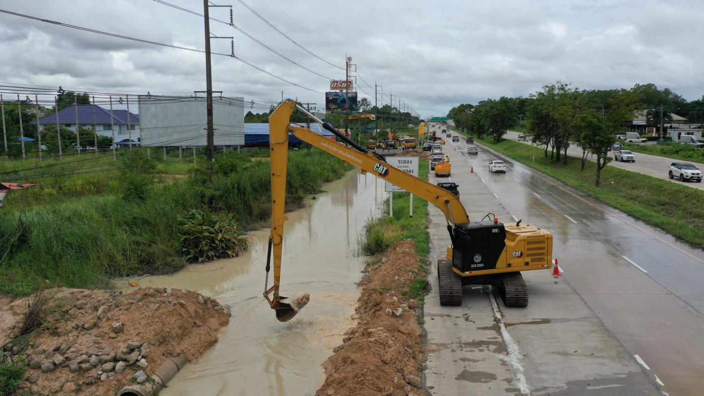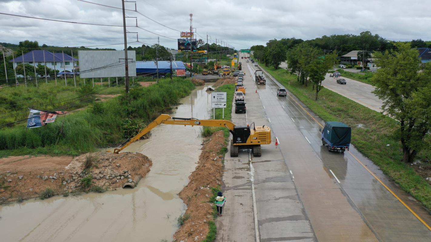 อบจ.ระยอง สนับสนุนเครื่องจักรกล แก้ไขปัญหาน้ำท่วมขังผิวจราจร