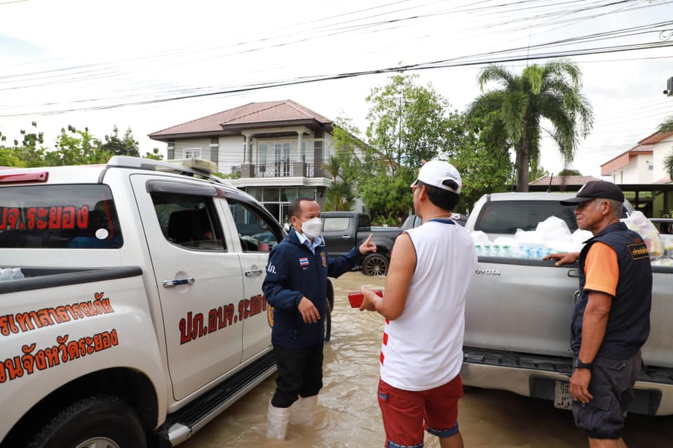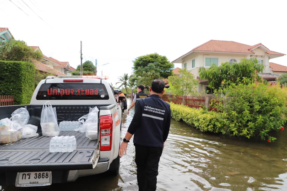ศูนย์ประสานงานช่วยเหลือผู้ประสบภัย อบจ.ระยอง นำข้าวกล่อง น้ำดื่ม อาหารแห้งมอบให้ชาวบ้านผู้ประสบอุทกภัยในเขตพื้นที่จังหวัดระยอง