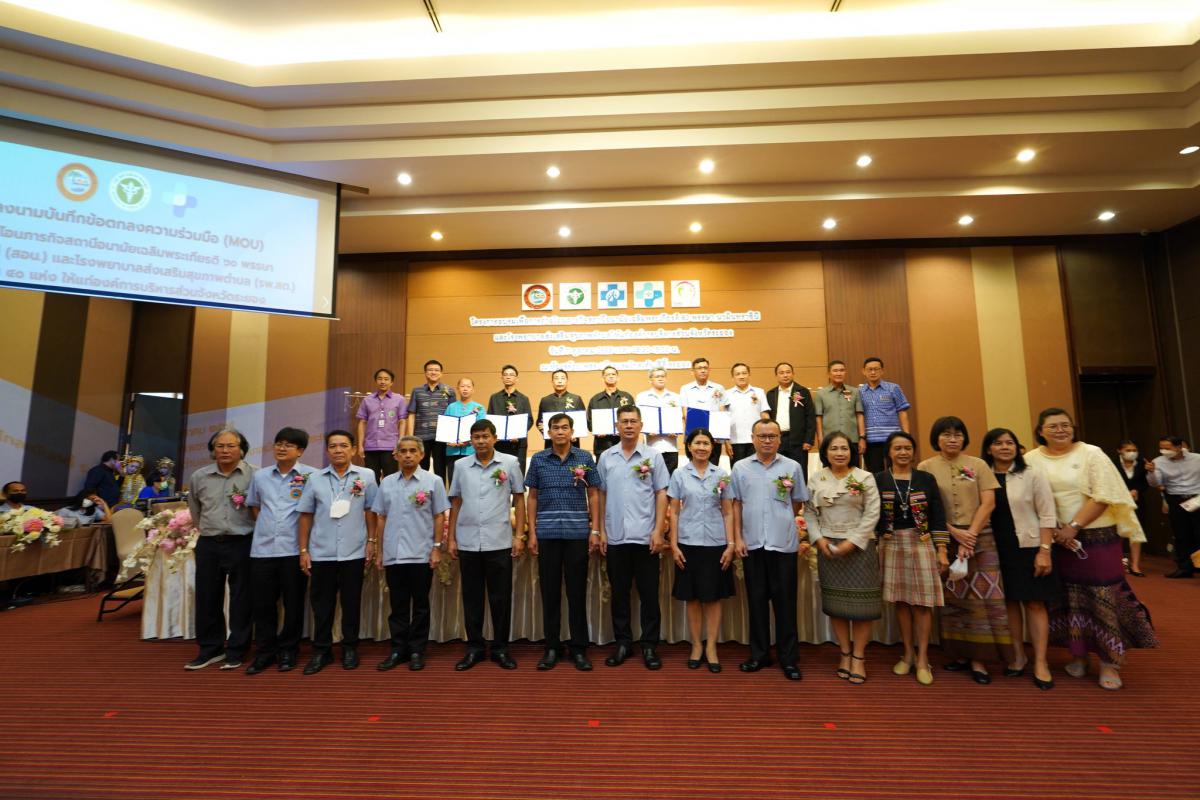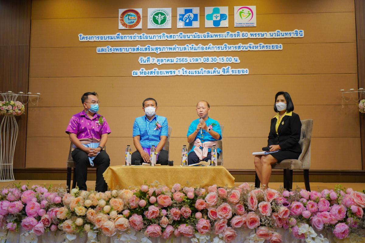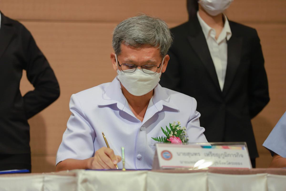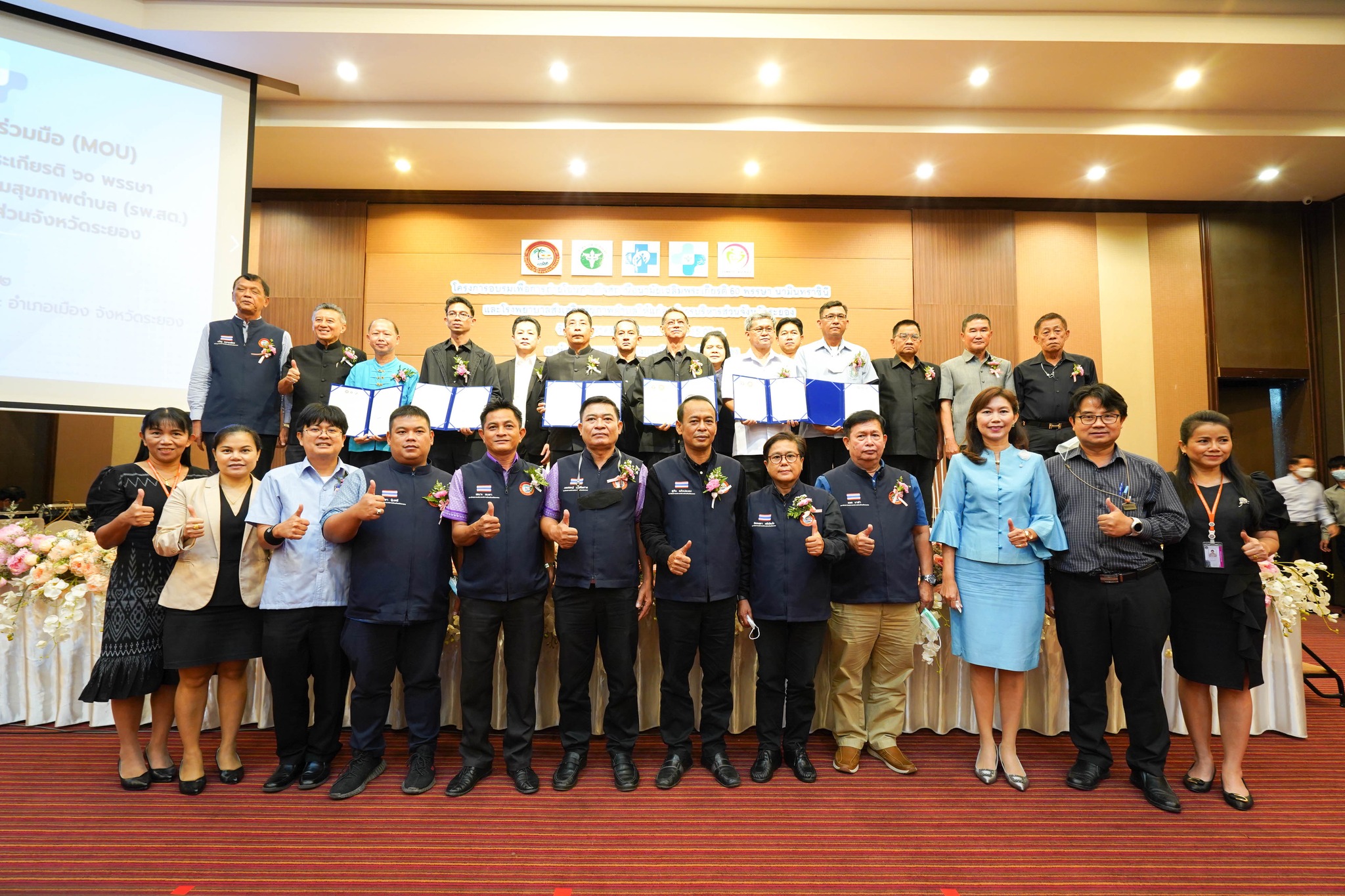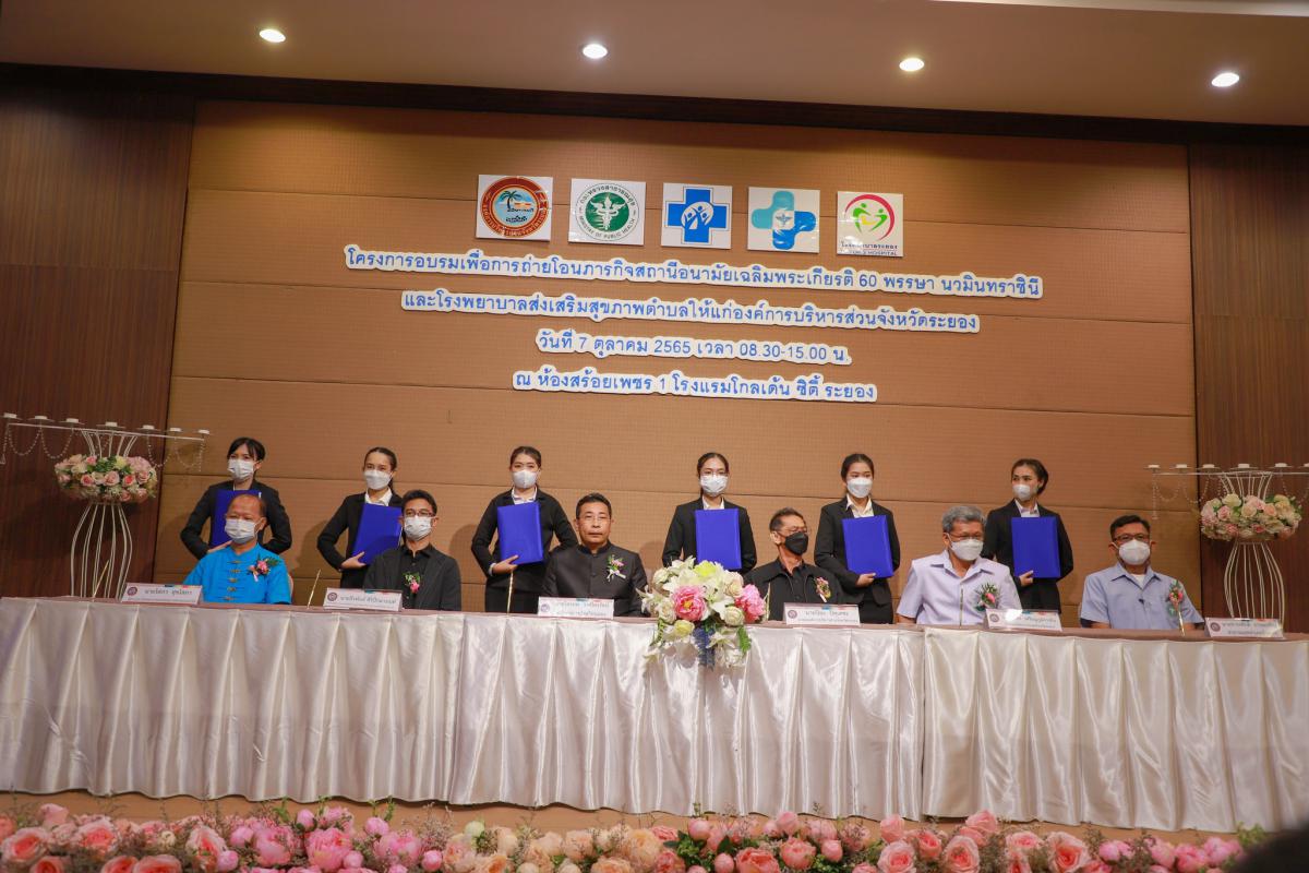 “พิธีลงนามบันทึกข้อตกลง (MOU) การถ่ายโอนสถานีอนามัยเฉลิมพระเกียรติ 60 พรรษา นวมินทราชินี (สอน.) และโรงพยาบาลส่งเสริมสุขภาพตำบล (รพ.สต.) ทั้ง 40 แห่ง ให้แก่ อบจ.ระยอง”