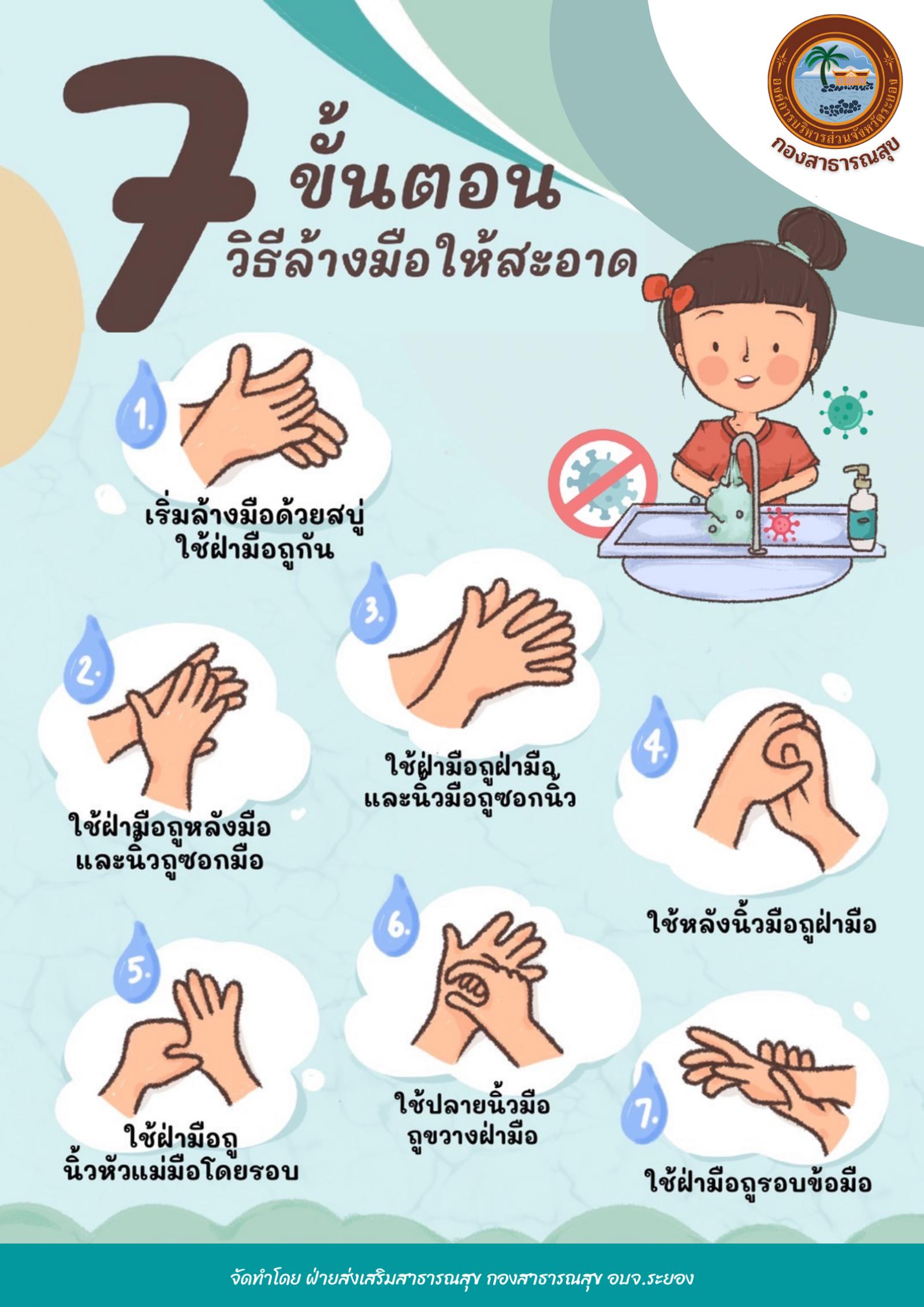 ด้วยจังหวัดระยอง มีหนังสือที่ รย ๐๐๒๓.๓/ว๔๙๔๐ ลงวันที่ ๒๓ กันยายน ๒๕๖๕ แจ้งว่ากรมส่งเสริมการปกครองท้องถิ่นได้รับแจ้งจากกรมอนามัยว่า ขอความร่วมมือองค์กรปกครองส่วนท้องถิ่น จัดกิจกรรมรณรงค์วันล้างมือโลก ประจำปี ๒๕๖๕“รวมกันเป็นหนึ่งเพื่อสุขอนามัยของมือ Unite for Universal Hand Hygiene”เพื่อเป็นการรณรงค์และสร้างความตระหนักให้ประชาชนทุกกลุ่มวัยล้างมือด้วยน้ำและสบู่อย่างถูกต้อง ๗ ขั้นตอน และเป็นมาตรการหลักในการป้องกันโรคและหยุดการแพร่กระจายของโรคได้ ในการนี้ เพื่อให้ประชาชนในจังหวัดระยอง ทราบถึงขั้นตอนการล้างมือด้วยน้ำสะอาดและสบู่ ๗ ขั้นตอนและสามารถปฏิบัติตนในการการล้างมือที่ถูกต้องจนเกิดเป็นนิสัยการรักสุขภาพ และเป็นมาตรการหลักส่วนบุคคลในการป้องกันและหยุดการแพร่กระจายของเชื้อโรคที่มีประสิทธิภาพ จึงขอเผยแพร่เอกสารดังกล่าวให้ทราบโดยทั่วกัน รายละเอียดตามเอกสารที่แนบมาพร้อมนี้