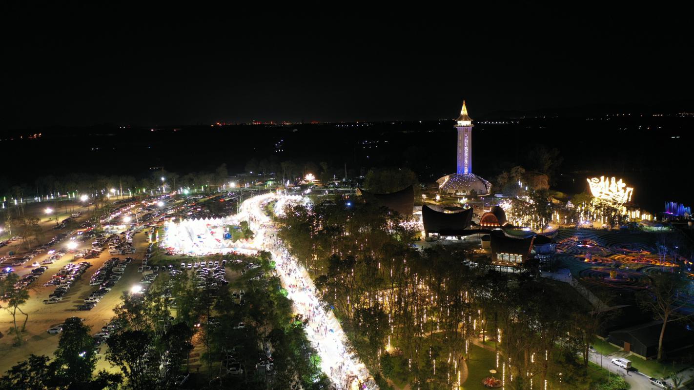 ภาพบรรยากาศช่วงกลางคืนของโครงการงานวันพ่อแห่งชาติ ประจำปี 2565 ในวันที่ 6 ธันวาคม 2565