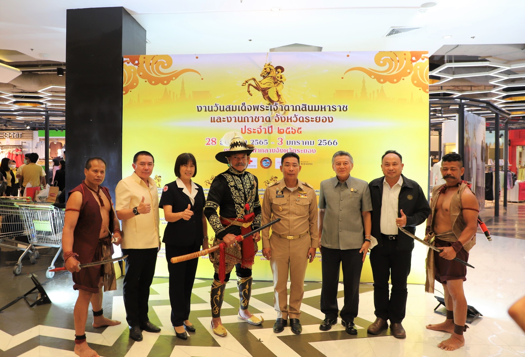 วันที่ 14 ธันวาคม 2565 เวลา 17.00 น. ณ ศูนย์การค้า แพชชั่น ช้อปปิ้งเดสติเนชั่น อ.เมือง จ.ระยอง นายไตรภพ วงศ์ไตรรัตน์ ผู้ว่าราชการจังหวัดระยอง เป็นประธานแถลงข่าวการจัดงานวันสมเด็จพระเจ้าตากสินมหาราชและงานกาชาดจังหวัดระยอง ประจำปี 2565 พร้อมด้วย นายมนตรี ชนะชัยวิบูลย์วัฒน์ ที่ปรึกษานายกองค์การบริหารส่วนจังหวัดระยอง, นางลัดดาวัลย์ ชาไธสง ผู้อำนวยการกองยุทธศาสตร์และงบประมาณ, นางนิลวรรณ เหมะรักษ์ รองนายกเหล่ากาชาดจังหวัดระยอง, นายสุพจน์ ต่ออาจหาญ ปลัดจังหวัดระยอง, นายศิริวัฒน์ อ้นพร้อม ประชาสัมพันธ์จังหวัดระยอง, นายวรวุฒิ ด่านสมพงศ์ วัฒนธรรมจังหวัดระยองนางสาวสายฝน โชชัย คลังจังหวัดระยอง,นางกัญญ์ชลา สุจิกุล ท่องเที่ยวและกีฬาจังหวัดระยอง,นางสาวสุวรรณา ศรุติลาวัณย์ รองผู้อำนวยการ การท่องเที่ยวแห่งประเทศไทย สำนักงานระยอง,นายฉัตรนุชัย สมบัติศรี ปลัดเทศบาลนครระยอง ผู้แทนหน่วยงานภาครัฐและภาคเอกชน เข้าร่วมงานแถลงข่าวโดยพร้อมเพรียงกัน