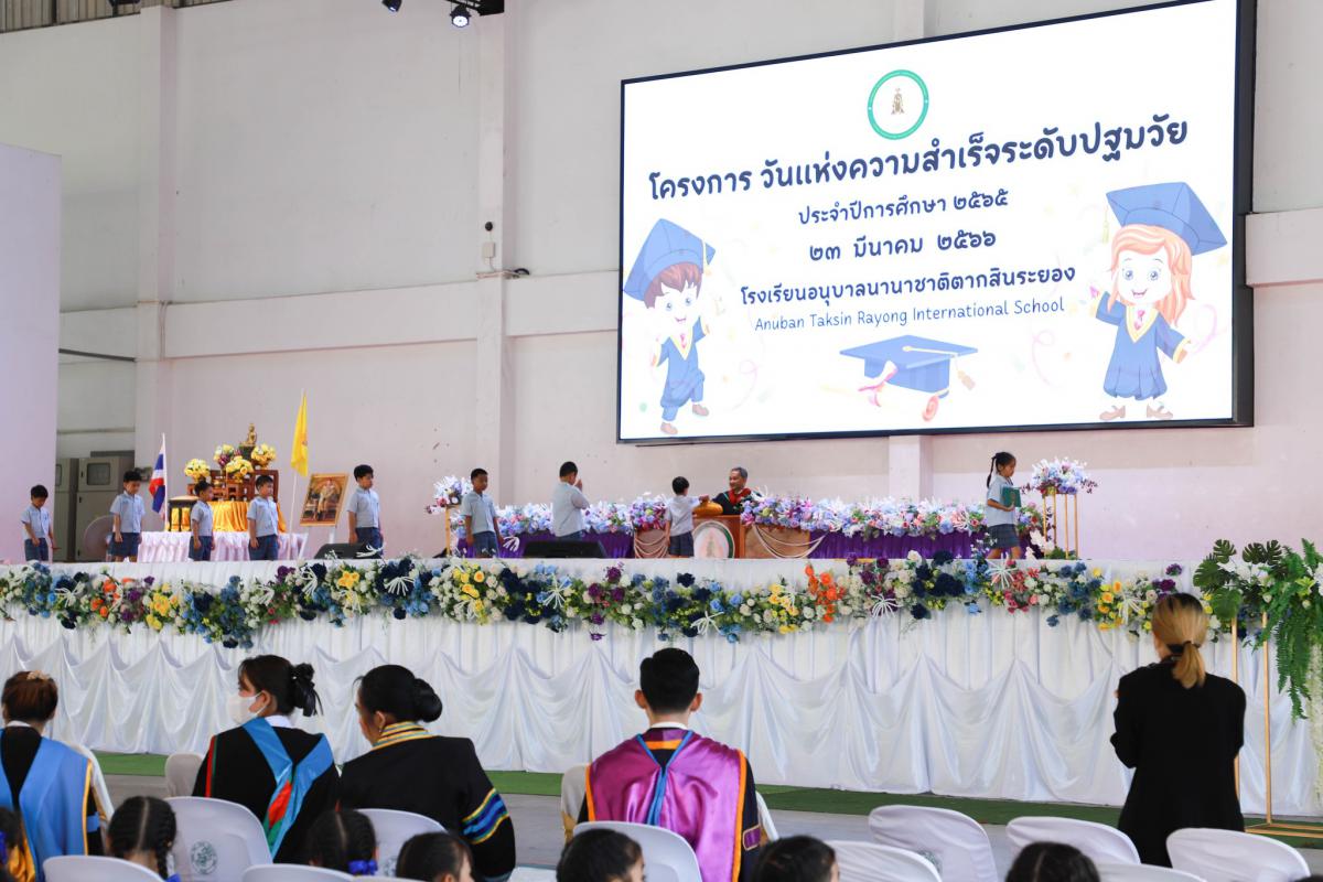 โครงการวันแห่งความสำเร็จระดับปฐมวัย จัดขึ้นเพื่อให้นักเรียนมีความภาคภูมิใจในความสำเร็จของตนเอง และให้นักเรียนเห็นถึงความสำคัญของการศึกษาต่อในระดับที่สูงขึ้น ซึ่งมีเด็กนักเรียนในระดับชั้นอนุบาล 3 เข้าร่วมงานจำนวน 299 คน ภายในงานได้มีการมอบประกาศนียบัตร ให้กับเด็กนักเรียนที่สำเร็จการศึกษาเพื่อเป็นการแสดงความยินดีให้กับเด็กนักเรียน ณ อาคารอเนกประสงค์ โรงเรียนอนุบาลนานาชาติตากสินระยอง