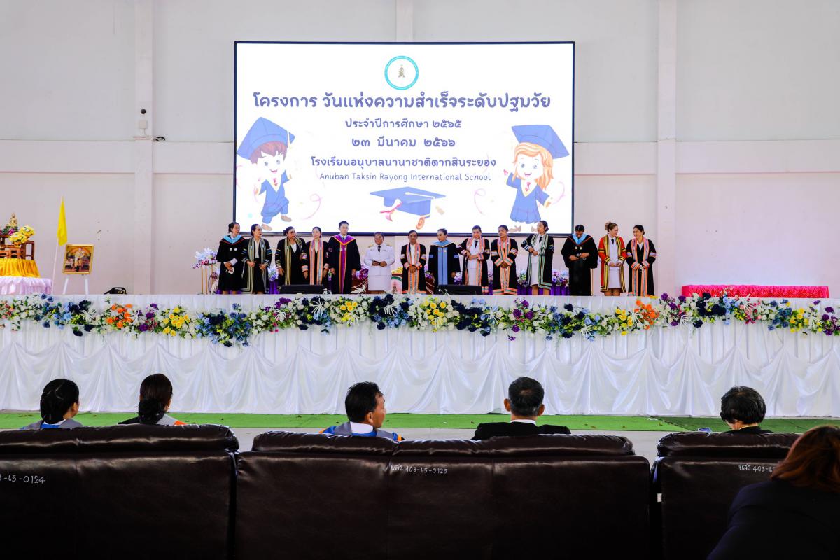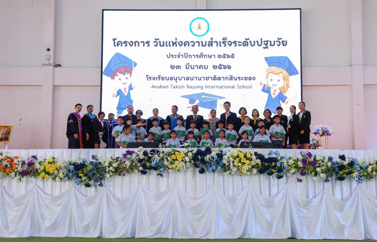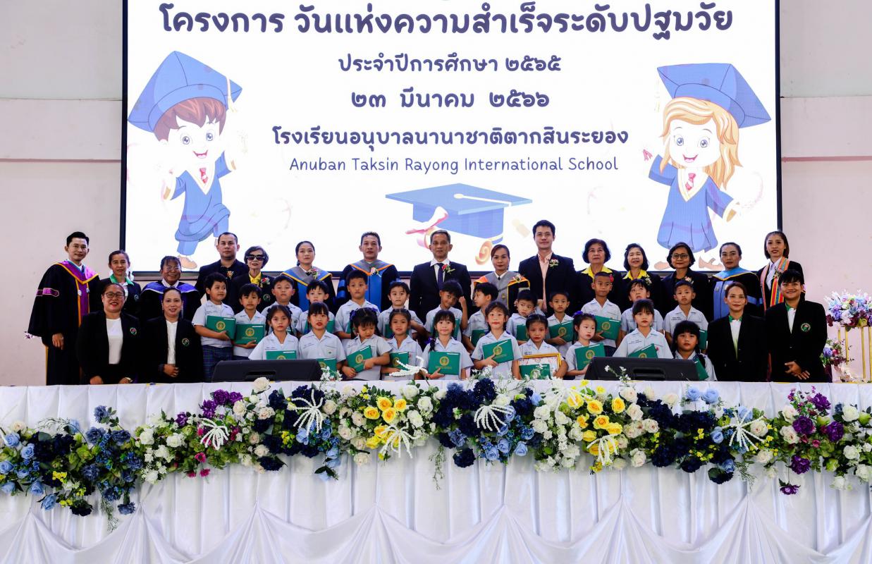 วันที่ 23 มีนาคม 2566 เวลา 09.00 น. นายประสานต์ พฤกษาชาติ รองนายกองค์การบริหารส่วนจังหวัดระยอง (2) เป็นประธานในพิธี พร้อมด้วย นายสนิท โคตะระ ผู้อำนวยการสถานศึกษา โรงเรียนอนุบาลนานาชาติตากสินระยอง ผู้เชี่ยวชาญ คณะกรรมการสถานศึกษา คณะกรรมการเครือข่ายผู้ปกครอง คณะครู และผู้ที่เกี่ยวข้องเข้าร่วมโครงการวันแห่งความสำเร็จระดับปฐมวัย ประจำปีการศึกษา 2565 โดยพร้อมเพรียงกัน