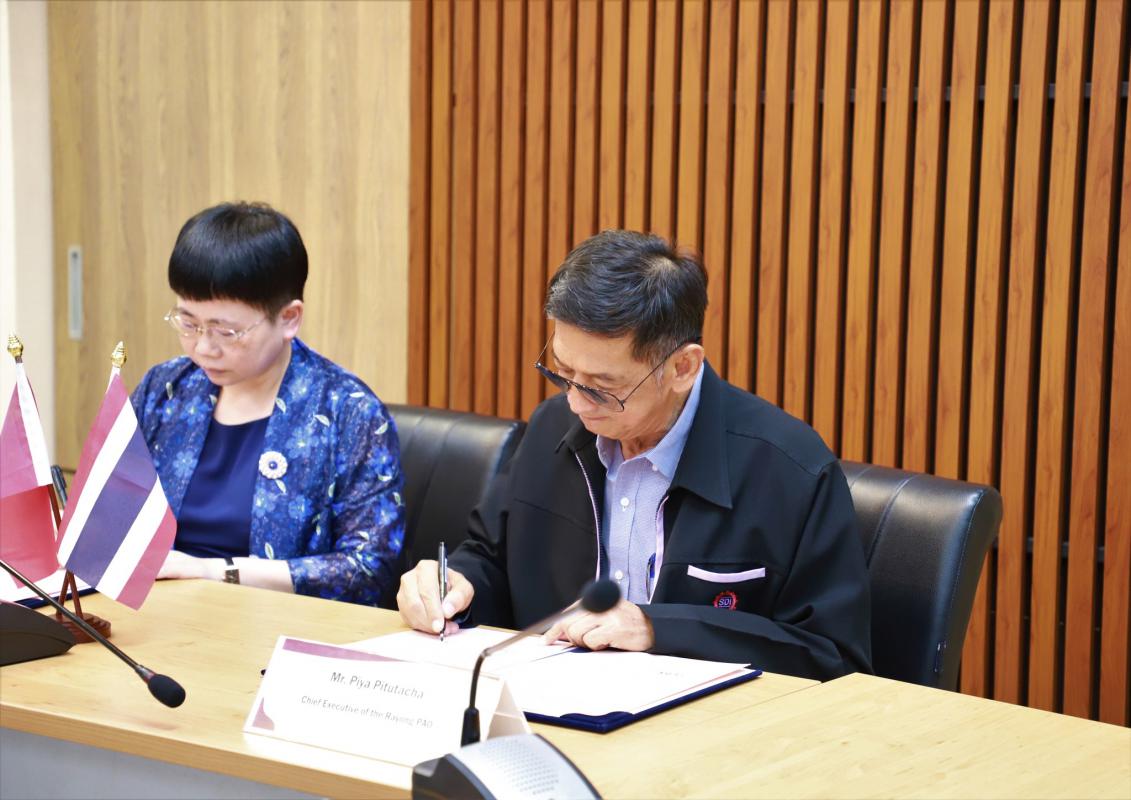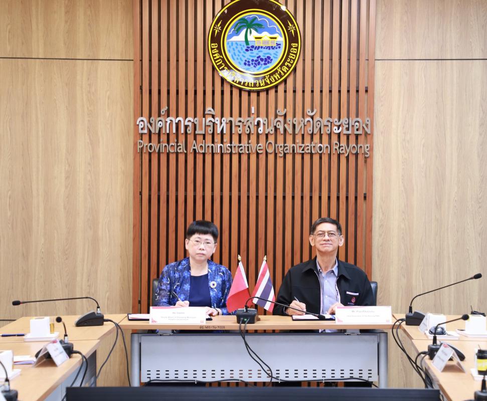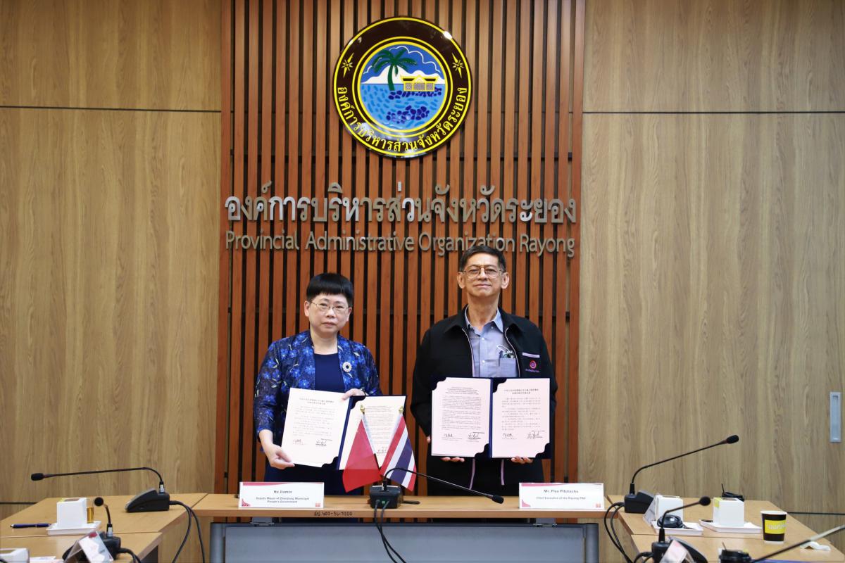 โดยมีวัตถุประสงค์ เพื่อหารือเกี่ยวกับเศรษฐกิจและความร่วมมือในการสร้างข้อตกลงภาคอุตสาหกรรมระหว่างประเทศ และมีการลงนามการแลกเปลี่ยน ส่งเสริมความสัมพันธ์ระหว่างจังหวัดระยองกับเทศบาลเมืองจ้านเจียง สาธารณรัฐประชาชนจีน ณ ห้องประชุม 1 ชั้น 3 องค์การบริหารส่วนจังหวัดระยอง