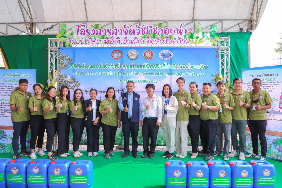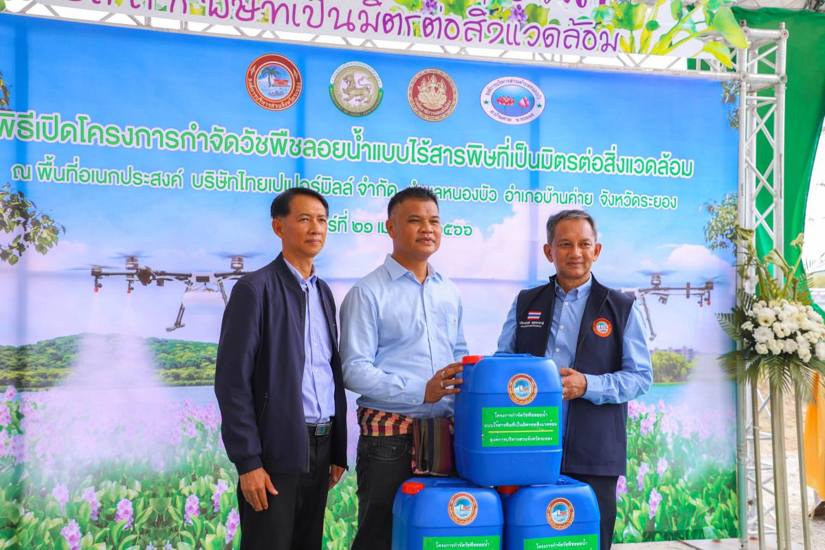 วันที่ 21 เมษายน 2566 เวลา 09.00 น. นายประสานต์ พฤกษาชาติ รองนายกองค์การบริหารส่วนจังหวัดระยอง เป็นประธานในโครงการกำจัดวัชพืชลอยน้ำแบบไร้สารพิษที่เป็นมิตรต่อสิ่งแวดล้อม โดยมี นางณิชาพร คุ้มท้วม ผู้อำนวยการกองทรัพยากรและสิ่งแวดล้อม เป็นผู้กล่าวรายงาน พร้อมด้วยผู้อำนวยการกอง หัวหน้าส่วนราชการ ผู้นำชุมชน และเจ้าหน้าที่ที่เกี่ยวข้องเข้าร่วมเปิดโครงการ อย่างพร้อมเพรียง ณ พื้นที่อเนกประสงค์ บริษัทไทยเปเปอร์มิลล์ จำกัด ตำบลหนองบัว อำเภอบ้านค่าย จังหวัดระยอง