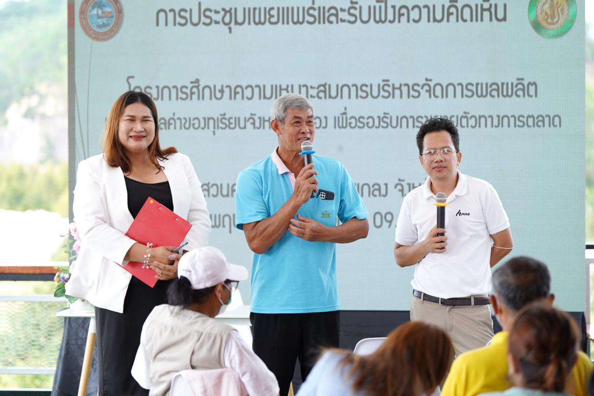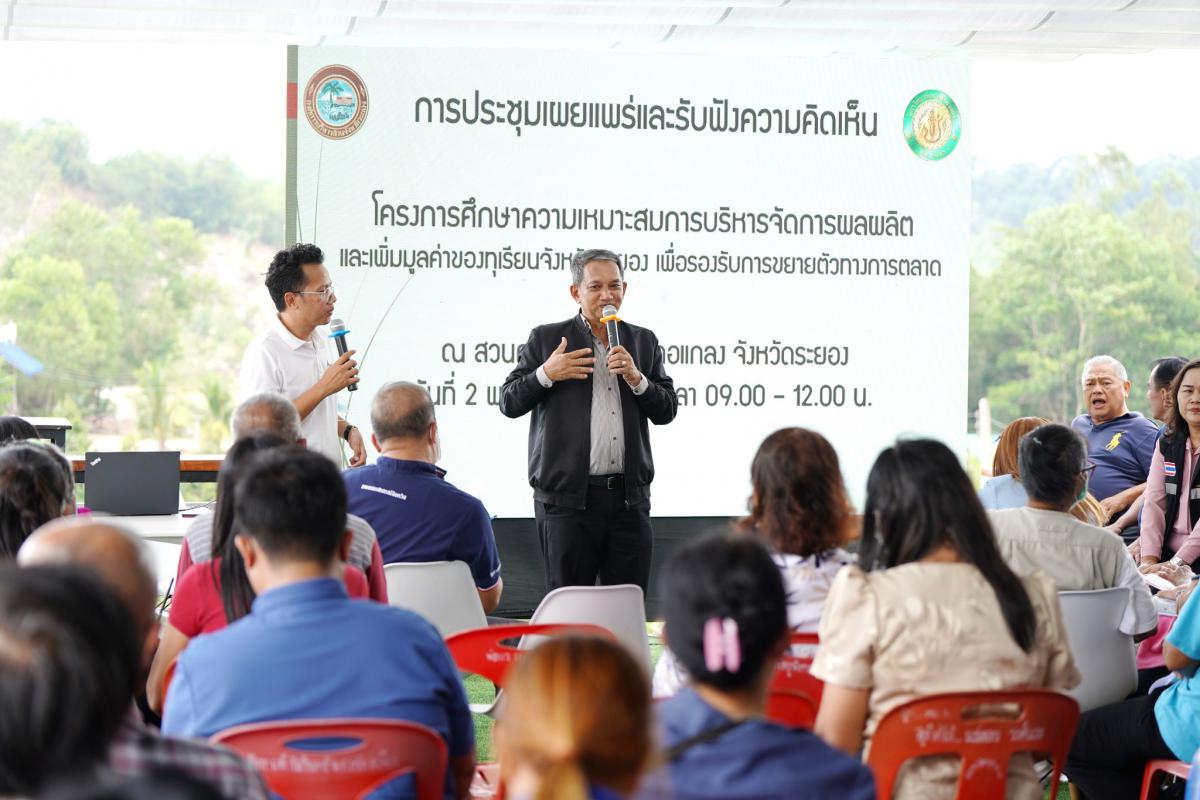 ประชุมเผยแพร่และรับฟังความคิดเห็น โครงการศึกษาความเหมาะสมการบริหารจัดการผลผลิตและเพิ่มมูลค่าของทุเรียนจังหวัดระยอง เพื่อรองรับการขยายตัวทางการตลาด