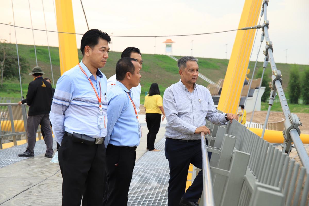 วันที่ 10 พฤษภาคม 2566 เวลา 17.00 น. นายประสานต์ พฤกษาชาติ รองนายกองค์การบริหารส่วนจังหวัดระยอง (2) พร้อมด้วย หัวหน้าส่วนราชการ ผู้อำนวยการกอง และเจ้าหน้าที่ที่เกี่ยวข้องร่วมลงพื้นที่บริเวณสะพานเชื่อมบุบผา เพื่อทดสอบระบบไฟบนสะพาน และระบบการปล่อยน้ำให้มีความพร้อมก่อนเปิดให้นักท่องเที่ยวได้เข้าชม เพื่อเป็นแลนด์มาร์คแห่งใหม่ในจังหวัดระยอง ณ ศูนย์บริการการพัฒนาปลวกแดงตามพระราชดำริ (อ่างเก็บน้ำดอกกราย) อำเภอปลวกแดง จังหวัดระยอง
