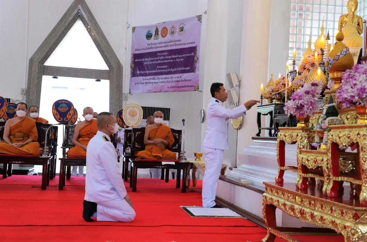 วันที่ 1 มิถุนายน 2566 เวลา 09.00 น. องค์การบริหารส่วนจังหวัดระยอง นำโดยนายสมบัติ มุมทอง หัวหน้าสำนักปลัดองค์การบริหารส่วนจังหวัด พร้อมด้วยข้าราชการอบจ.ระยอง เข้าร่วมพิธีเจริญพระพุทธมนต์สมโภชพระพุทธรูปสำคัญประจำจังหวัด เฉลิมพระเกียรติสมเด็จพระนางเจ้าสุทิดา พัชรสุธาพิมลลักษณ พระบรมราชินี เนื่องในโอกาสวันเฉลิมพระชนมพรรษา 3 มิถุนายน 2566 เพื่อส่งเสริมให้พสกนิกรทุกหมู่เหล่าร่วมกันทำความดีถวายพระราชกุศลแสดงออกถึงความจงรักภักดีต่อสถาบันพระมหากษัตริย์ ณ พระอุโบสถ วัดป่าประดู่ พระอารามหลวง อำเภอเมืองระยอง จังหวัดระยอง