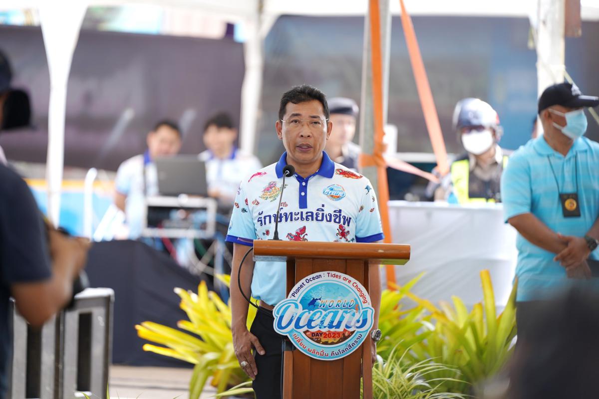 วันที่ 8 มิถุนายน 2566 เวลา 10.00 น. นายวราวุธ ศิลปะอาชา รัฐมตรีว่าการกระทรวงทรัพยากรธรรมชาติและสิ่งแวดล้อม เป็นประธานในพิธี พร้อมด้วย นายจตุพร บุรุษพัฒน์ ปลัดกระทรวงทรัพยากรมธรรมชาติและสิ่งแวดล้อม, นายอภิชัย เอกวนากุล รองอธิบดีกรมทรัพยากรทางทะเลและชายฝั่ง รักษาราชการแทน อธิบดีกรมทรัพยากรทางทะเลและชายฝั่ง, นายไตรภพ วงศ์ไตรรัตน์ ผู้ว่าราชการจังหวัดระยอง, นายกอบศักดิ์ ภูตระกูล ผู้แทนสมาคมบริษัทจดทะเบียนไทย, นายประสานต์ พฤกษาชาติ รองนายกองค์การบริหารส่วนจังหวัดระยอง (2) สมาชิกสภาองค์การบริหารส่วนจังหวัดระยอง ผู้บริหารองค์กรภาครัฐ ภาคเอกชน ชุมชนชายฝั่งทะเล และเจ้าหน้าที่เกี่ยวข้องเข้าร่วมกิจกรรมวันทะเลโลก ประจำปี 2566 โดยพร้อมเพรียงกัน