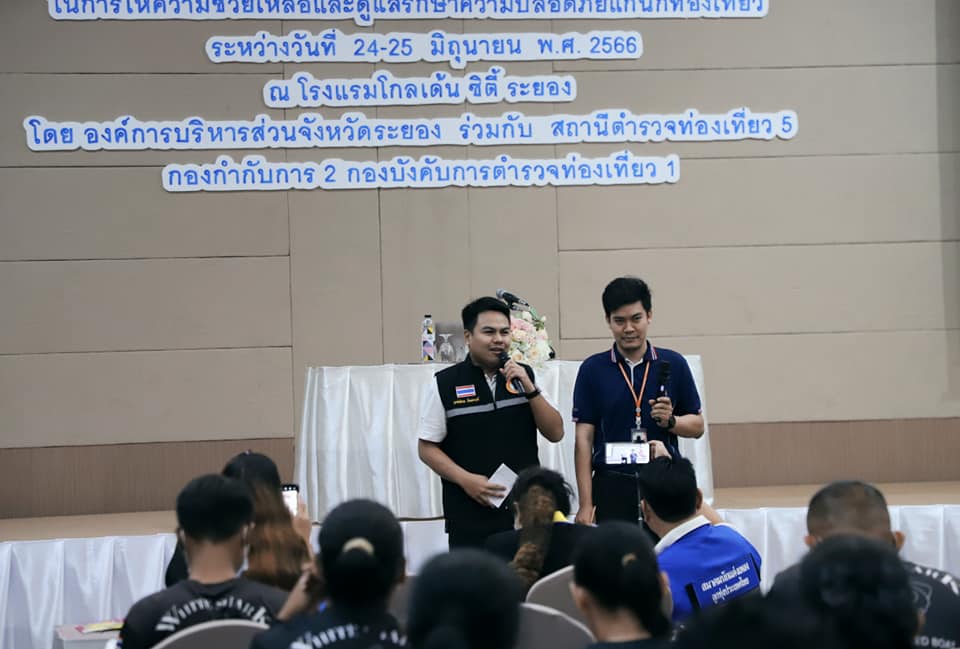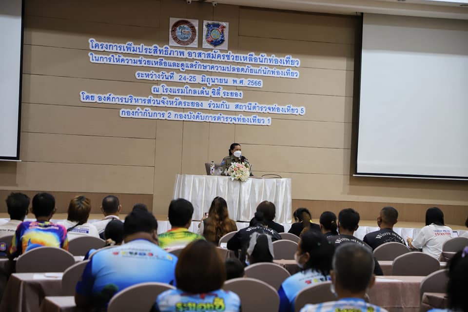องค์การบริหารส่วนจังหวัดระยอง ร่วมกับสถานีตำรวจท่องเที่ยว 5 กองกำกับการ 2 กองบังคับการตำรวจท่องเที่ยว 1 ได้ตระหนักถึงความสำคัญในการส่งเสริมการท่องเที่ยวและป้องกันการบรรเทาสาธารณภัย เพื่อเป็นการส่งเสริมเพิ่มประสิทธิภาพอาสาสมัครช่วยเหลือนักท่องเที่ยวในการให้ความช่วยเหลือและดูแลรักษาความปลอดภัยแก่นักท่องเที่ยว จึงได้จัดทำโครงการดังกล่าวขึ้นโดยมีผู้เข้ารับการฝึกอบรมจำนวน 140 คน ซึ่งได้รับเกียรติวิทยากรจาก สถานีตำรวจท่องเที่ยว 5 กองกำกับการ 2 กองบังคับการตำรวจท่องเที่ยว 1 ตลอดการอบรม การจัดอบรมได้จัดขึ้นระหว่างวันที่ 24-25 มิถุนายน 2566 ณ โรงแรมโกลเด้น ซิตี้ ระยอง