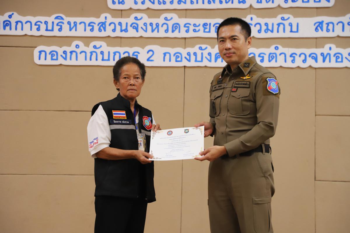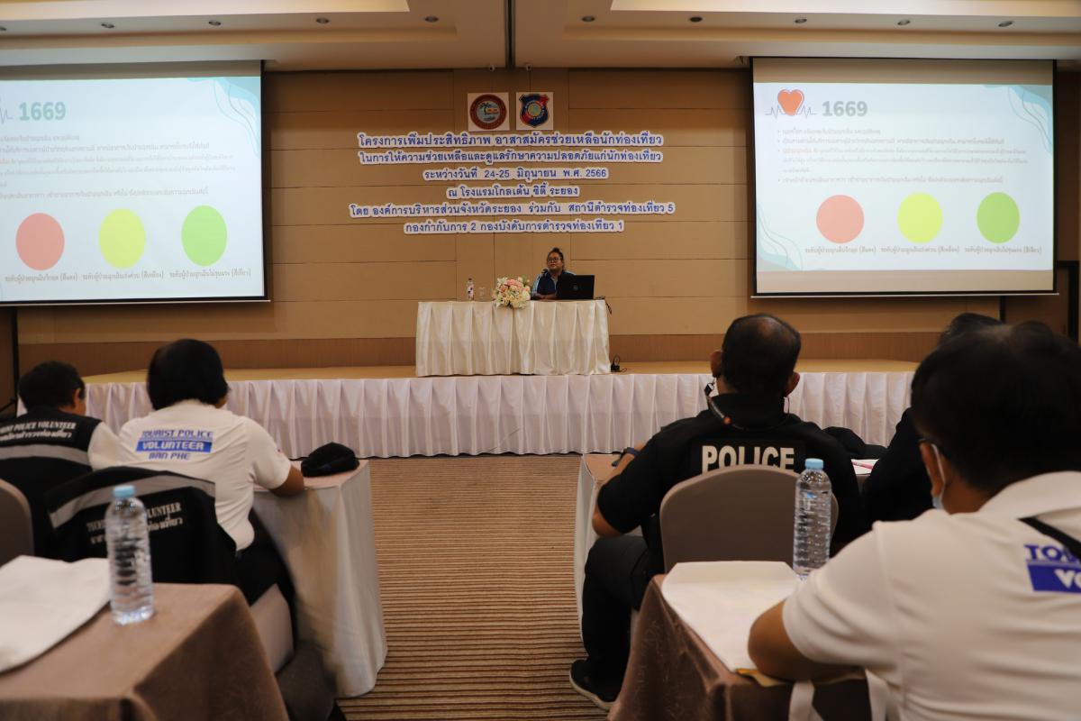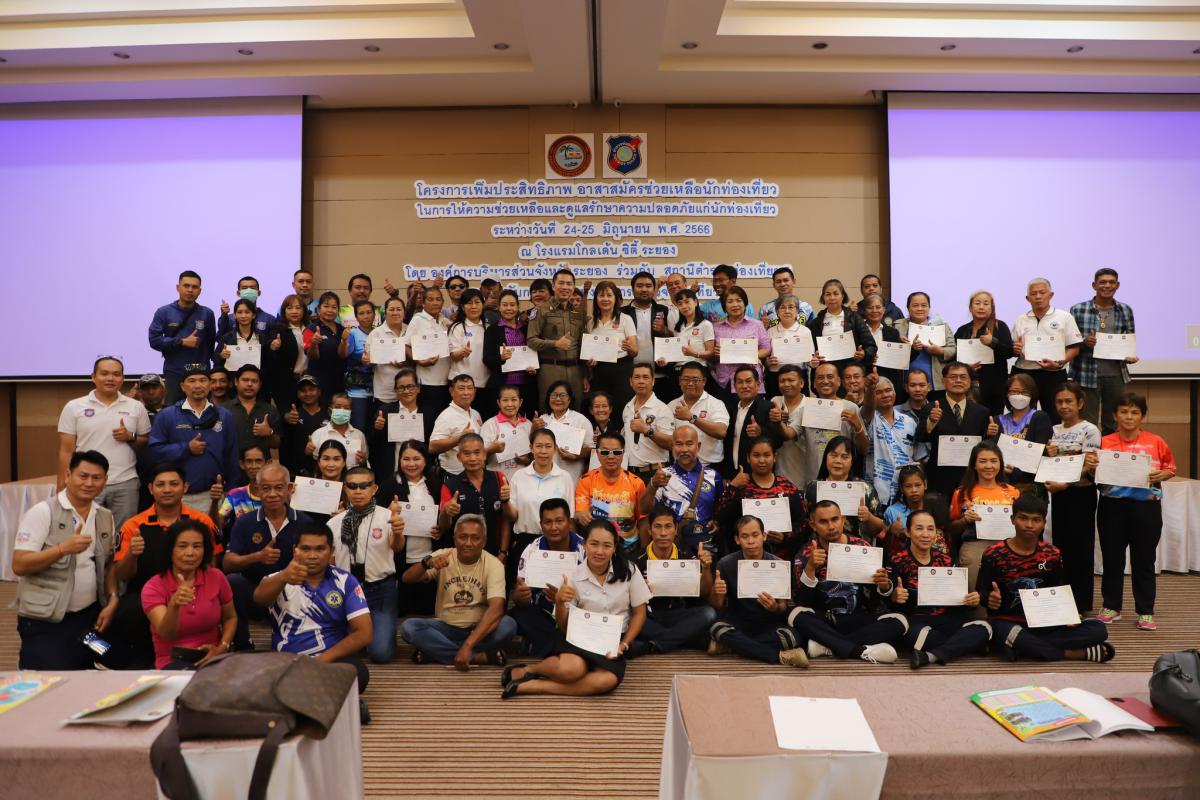 วันที่ 25 มิถุนายน 2566 เวลา 09.00 น. องค์การบริหารส่วนจังหวัดระยอง ร่วมกับสถานีตำรวจท่องเที่ยว 5 กองกำกับการ 2 กองบังคับการตำรวจท่องเที่ยว 1 จัดโครงการเพิ่มประสิทธิภาพอาสาสมัครช่วยเหลือนักท่องเที่ยวในการให้ความช่วยเหลือและดูแลรักษาความปลอดภัยให้แก่นักท่องเที่ยว ตั้งแต่วันที่ 24 - 25 มิถุนายน 2566 โดยมีการบรรยายในเรื่องระบบการแพทย์ฉุกเฉิน ศูนย์รับแจ้งเหตุและสั่งการทางการแพทย์ฉุกเฉินจังหวัดระยอง และการฝึกปฏิบัติในหัวข้อ การประเมินสถานการณ์ การปฐมพยาบาลเบื้องต้น และการเคลื่อนย้ายผู้ประสบภัยด้วยมือเปล่าและอุปกรณ์, การฟื้นคืนชีพด้วยมือ (CPR) การใช้เครื่อง AED การส่งตัวผู้ประสบภัยไปรักษาต่อที่โรงพยาบาล และพิธีมอบเกียรติบัตรโดยตัวแทนจากสถานีตำรวจท่องเที่ยว 5 กองกำกับการ 2 กองบังคับการตำรวจท่องเที่ยว 1 ณ ห้องสร้อยทอง โรงแรมโกลเด้น ซิตี้ ระยอง