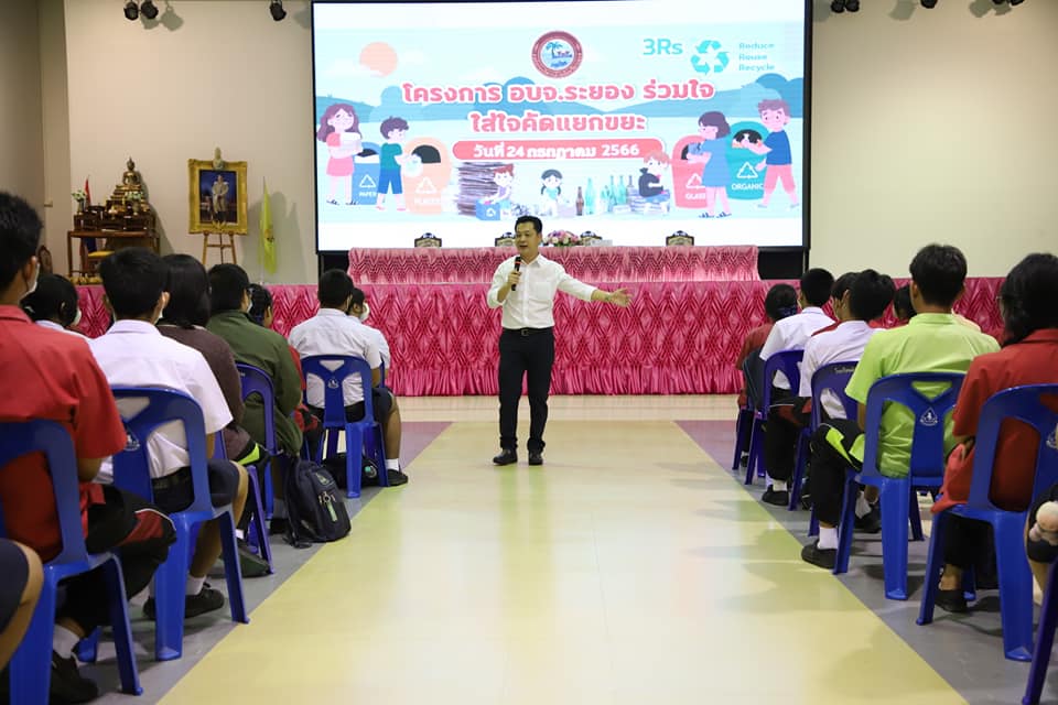 โดยฝ่ายจัดการมูลฝอยและสิ่งปฏิกูล กองสาธารณสุข องค์การบริหารส่วนจังหวัดระยอง ได้เล็งเห็นถึงความสำคัญในการคัดแยกขยะจากต้นทาง เพื่อให้บุคลากรและเด็กนักเรียน มีความรู้ ความเข้าใจ และถือปฏิบัติร่วมกันในการลดและคัดแยกขยะ โดยเด็กๆจะได้รับความรู้จากวิทยากรผู้มีความรู้และความสามารถ คือ คุณอัษฎา สวนมา และทีมงานจากบริษัท ไออาร์พีซี พร้อมทั้งเด็กๆจะได้เข้าฐานการเรียนรู้ ประกอบด้วยฐานการคัดแยกขยะ ฐานธนาคารขยะ และฐานการใช้ประโยชน์จากขยะ