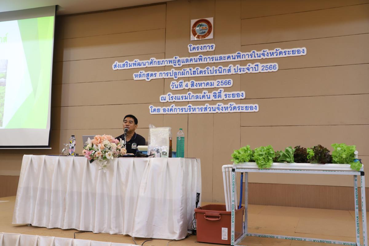 วันที่ 4 สิงหาคม 2566 นายประสานต์ พฤกษาชาติ รองนายกองค์การบริหารส่วนจังหวัดระยอง เป็นประธานเปิดโครงการส่งเสริมพัฒนาศักยภาพ ผู้ดูแลคนพิการและคนพิการในจังหวัดระยอง (หลักสูตรการปลูกผักไฮโดรโปนิกส์) ประจำปี 2566 พร้อมด้วย นายมนตรี ชนะชัยวิบูลวัฒน์ ที่ปรึกษานายกองค์การบริหารส่วนจังหวัดระยอง นายชัยวัฒน์ จัตตุพร เลขานุการนายกองค์การบริหารส่วนจังหวัดระยอง หัวหน้าส่วนราชการ และเจ้าหน้าที่ที่เกี่ยวข้อง เข้าร่วมโครงการฯกันอย่างพร้อมเพรียง ณ โรงแรมโกลเด้น ซิตี้ ระยอง องค์การบริหารส่วนจังหวัดระยอง ได้เล็งเห็นความสำคัญต่อการส่งเสริมอาชีพ สร้างรายได้ให้กับครอบครัวคนพิการและคนพิการ ซึ่งได้รับเกียรติจากคุณอนุชา งามกิจ ประธานวิสาหกิจชุมชนบ้านฉางไฮโดรฟาร์ม และทีมงานเป็นผู้มาให้ความรู้ในเรื่องการปลูกผักไฮโดรโปนิกส์