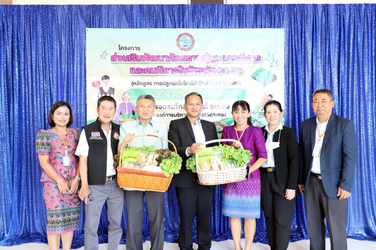 โครงการส่งเสริมพัฒนาศักยภาพ ผู้ดูแลคนพิการและคนพิการในจังหวัดระยอง (หลักสูตรการปลูกผักไฮโดรโปนิกส์) ประจำปี 2566