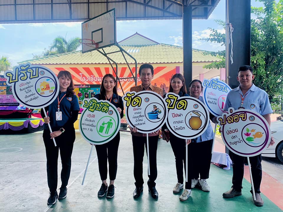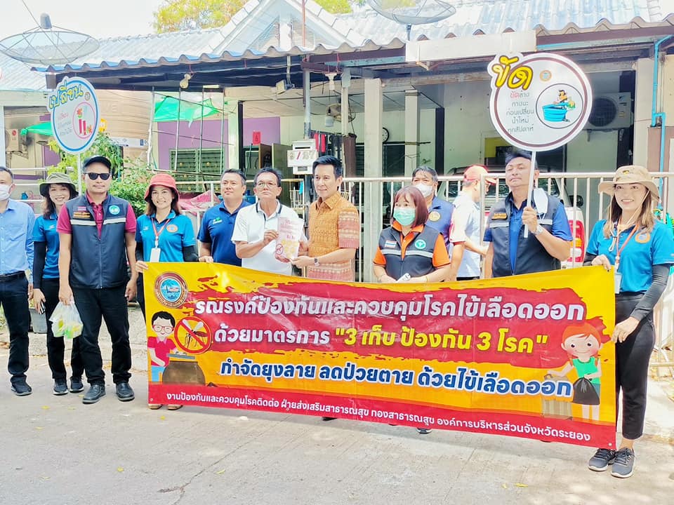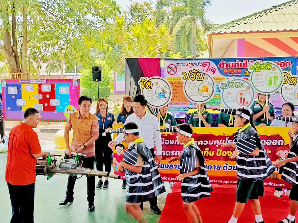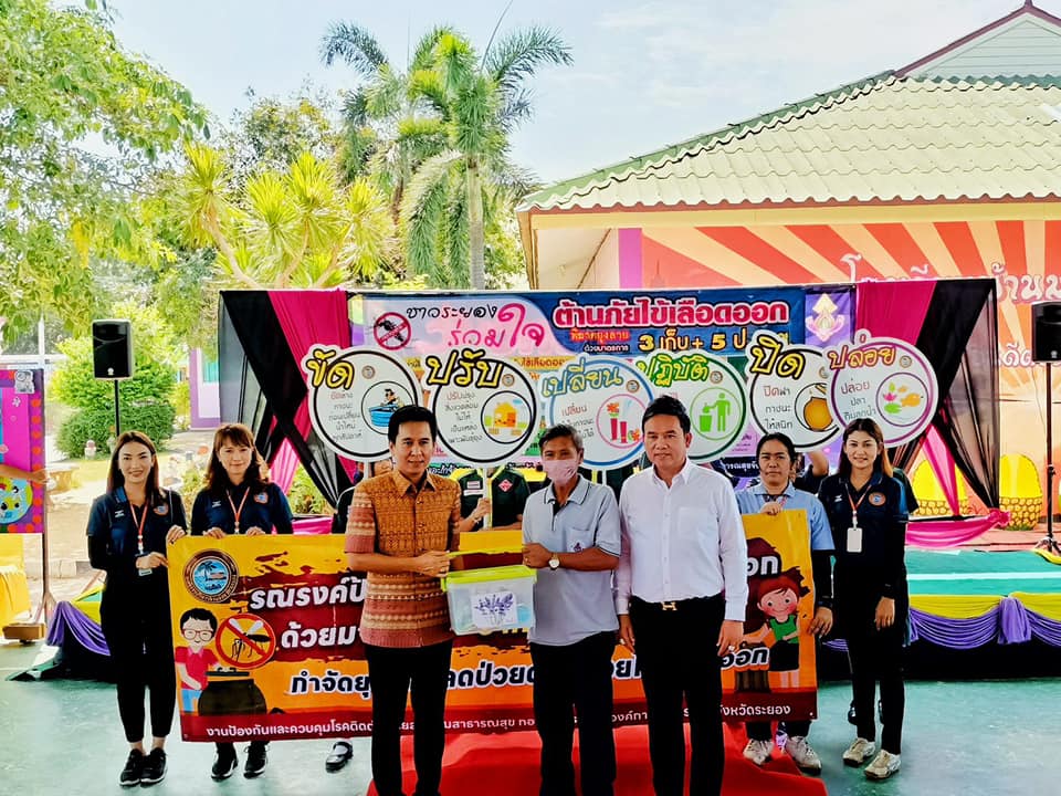 วันที่ 17 สิงหาคม 2566 กองสาธารณสุข อบจ.ระยอง ร่วมกับโรงพยาบาลส่งเสริมสุขภาพตำบลบ้านห้วยปราบ โรงพยาบาลส่งเสริมสุขภาพตำบลบ้านมาบยางพร สาธารณสุขอำเภอปลวกแดง สาธารณสุขจังหวัดระยอง ร่วมเดินรณรงค์การป้องกันและควบคุมโรคไข้เลือดออก พร้อมทั้งแจกอุปกรณ์และเคมีภัณฑ์ในการควบคุมยุงลาย ณ โรงเรียนบ้านมาบยางพร อำเภอปลวกแดง จังหวัดระยอง โดยมีนายสกนธ์ กรกฎ นายอำเภอปลวกแดง เป็นประธานเปิดโครงการดังกล่าว