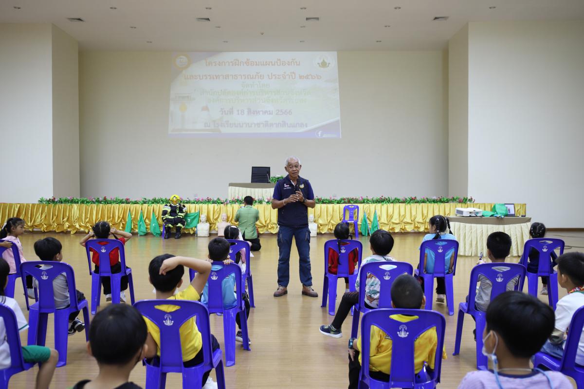 วันที่ 18 สิงหาคม 2566 เวลา 09.00 น. นายจรัญ ความเพียร เลขานุการองค์การบริหารส่วนจังหวัดระยอง ให้เกียรติเป็นประธานในการเปิดโครงการฝึกซ้อมแผนป้องกันและบรรเทาสาธารณภัย ประจำปี 2566 โดยมีนายหิรัญ กล่อมแก้ว หัวหน้าฝ่ายป้องกัน และบรรเทาสาธารณภัย องค์การบริหารส่วนจังหวัดระยอง เป็นผู้กล่าวรายงาน พร้อมด้วยผู้อำนวยการโรงเรียนนานาชาติตากสินแกลง คณะผู้บริหาร หัวหน้าส่วนราชการ คณะครู นักเรียน และเจ้าที่ที่เกี่ยวข้องเข้าร่วมโครงการอย่างพร้อมเพรียง ณ โรงเรียนนานาชาติตากสินแกลง