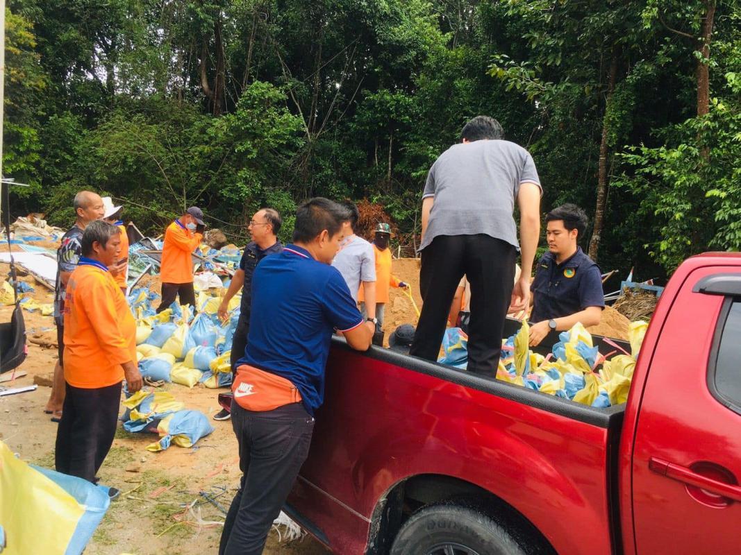 แจกจ่ายกระสอบทรายให้กับบ้านที่ขาดแคลนกระสอบทราย
