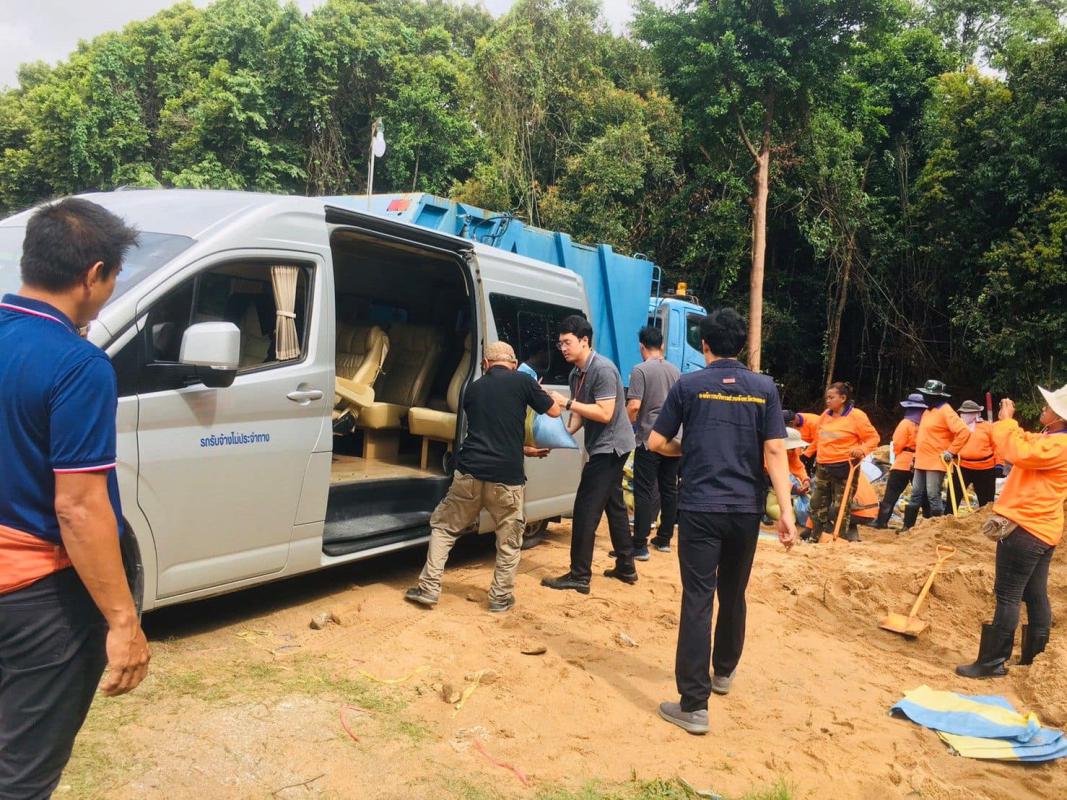 อบจ.ระยองร่วมกับเทศบาลตำบลเนินพระ ได้ดำเนินการลงพื้นที่ช่วยเหลือประชาชนบริเวณพื้นที่กรอกยายชา ในการขนกระสอบทราย และแจกจ่ายกระสอบทรายให้กับบ้านที่ขาดแคลนกระสอบทราย