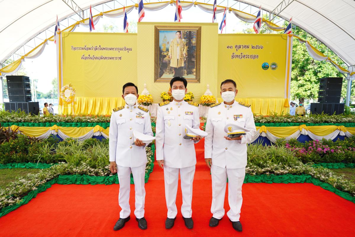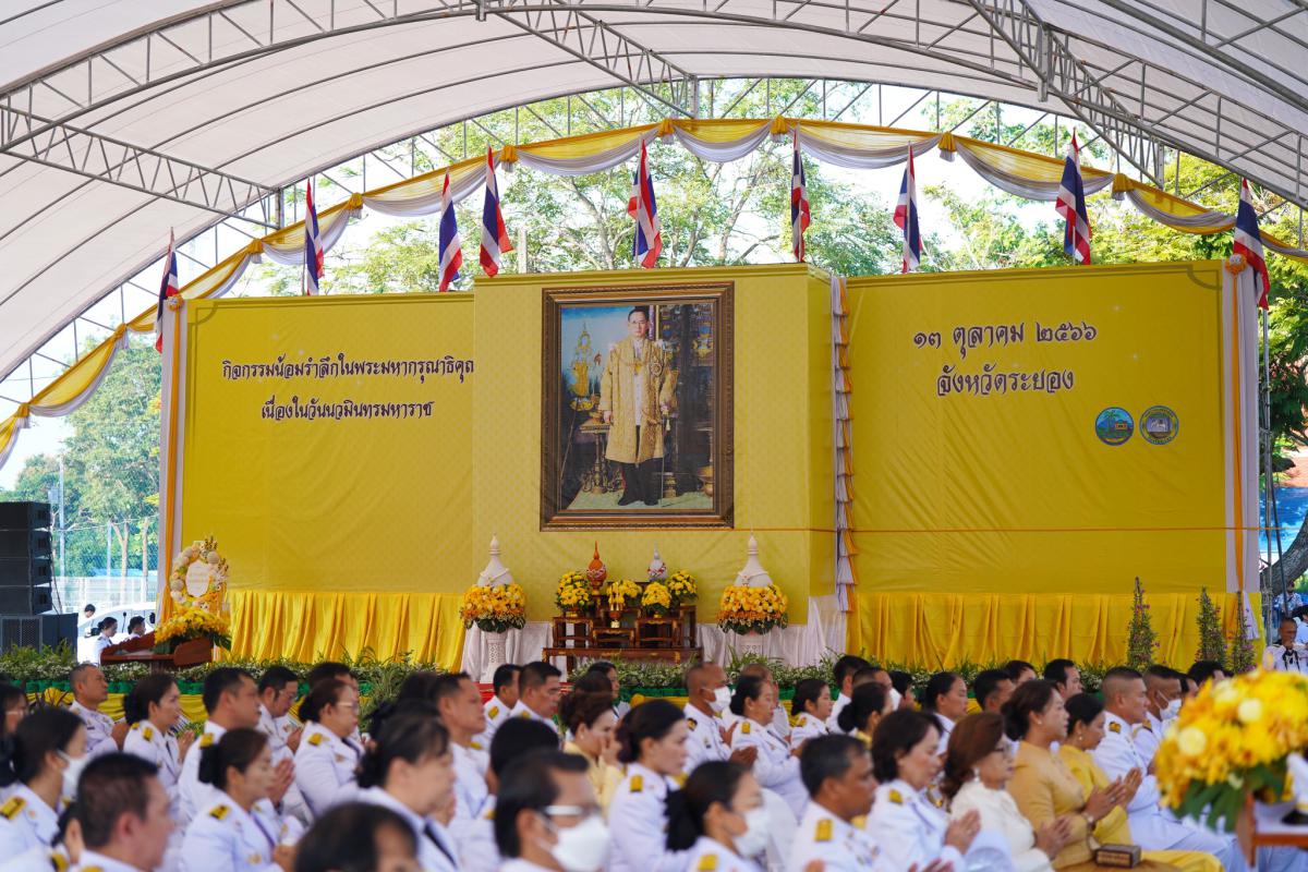 วันที่ 13 ตุลาคม 2566 เวลา 07.30 น. องค์การบริหารส่วนจังหวัดระยองนำโดย นายสมเกียรติ ยุพาพิน รองปลัดองค์การบริหารส่วนจังหวัดระยอง พร้อมด้วยข้าราชการ หัวหน้าส่วนราชการ เจ้าหน้าที่ภาครัฐและเอกชน หน่วยงานราชการในจังหวัดระยอง เข้าร่วมพิธีทำบุญตักบาตรถวายพระราชกุศล พระสงฆ์และสามเณร จำนวน 89 รูป และพิธีวางพวงมาลาเบื้องหน้าพระบรมฉายาลักษณ์ เพื่อน้อมลำลึกถึงพระมหาการุณาธิคุณในพระบาทสมเด็จพระบรมชนกาธิเบศร มหาภูมิพลอดุลยเดช บรมนาถบพิตร ที่ทรงมีต่อปวงชนชาวไทยเป็นล้นพ้นอย่างหาที่สุดไม่ได้ โดยมีนายไตรภพ วงศ์ไตรรัตน์ ผู้ว่าราชการจังหวัดระยอง เป็นประธานในพิธี ณ บริเวณพิธีสนามสวนศรีเมือง อ.เมืองระยอง จังหวัดระยอง
