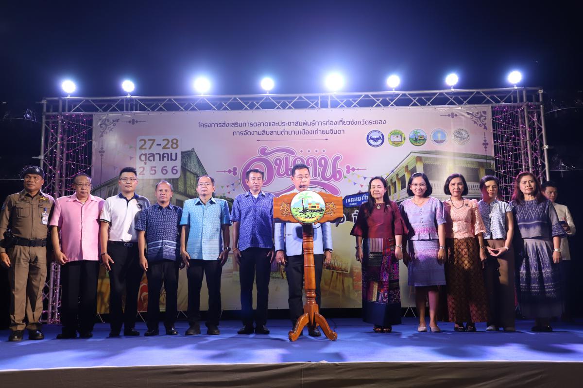 วันที่ 27 ตุลาคม 2566 เวลา 18.30 น. นายสุรินทร์ แสงทอง ปลัดองค์การบริหารส่วนจังหวัดระยอง พร้อมด้วย นายสมบัติ มุมทอง หัวหน้าสำนักปลัดองค์การบริหารส่วนจังหวัด และเจ้าหน้าที่ที่เกี่ยวข้องเข้าร่วมโครงการส่งเสริมการท่องเที่ยวจังหวัดระยอง ปี 2566 กิจกรรมการจัดงานสืบสานตำนานเมืองเก่ายมจินดา โดยมีนายไตรภพ วงศ์ไตรรัตน์ ผู้ว่าราชการจังหวัดระยอง เป็นประธานในพิธีเปิดโครงการ ซึ่งการจัดงานในครั้งมีวัตถุประสงค์เพื่อเป็นการส่งเสริมการท่องเที่ยวตามนโยบายรัฐบาล และกระตุ้นเศรษฐกิจการท่องเที่ยวแบบวิถีไทย เผยแพร่เอกลักษณ์วัฒนธรรมประเพณี วิถีชีวิต ตลอดจนภูมิปัญญาท้องถิ่นของชาวจังหวัดระยอง โดยงานจัดขึ้นระหว่างวันที่ 27-28 ตุลาคม 2566 ณ บริเวณลานวัฒนธรรมเมืองเก่าถนนยมจินดา อำเภอเมือง จังหวัดระยอง