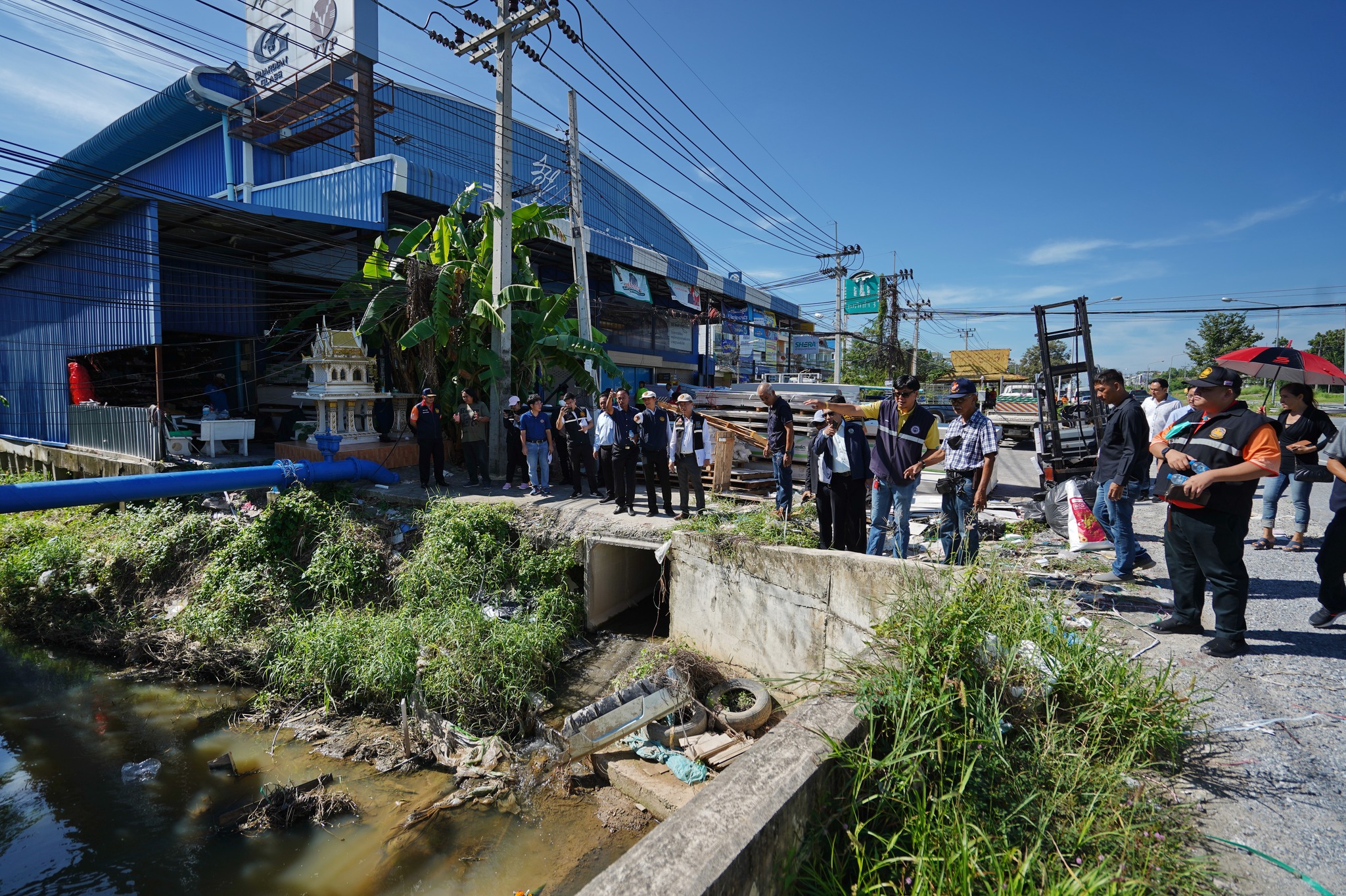 อบจ.ระยองเข้าร่วมประชุมและลงพื้นที่แก้ไขปัญหาน้ำท่วมบริเวณหมู่บ้านริมธาร