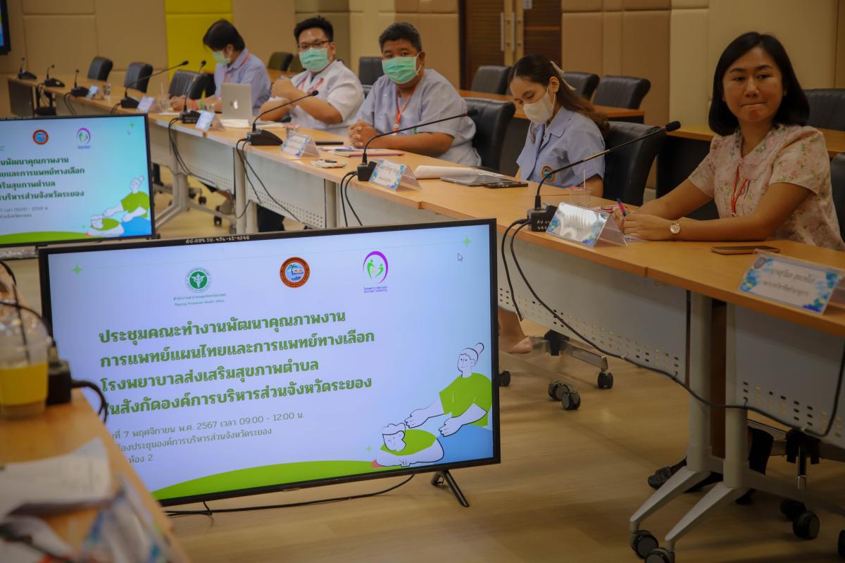 วันที่ 7 พฤศจิกายน 2566 เวลา 09.00 น. นายแพทย์ชัยวัฒน์ จัตตุพร เลขานุการนายกองค์การบริหารส่วนจังหวัดระยอง เปิดประชุม “คณะทำงานพัฒนาคุณภาพงานการแพทย์แผนไทยและการแพทย์ทางเลือกโรงพยาบาลส่งเสริมสุขภาพตำบล ในสังกัดองค์การบริหารส่วนจังหวัดระยอง” ณ ห้องประชุม อบจ.ระยอง ชั้น 3 ห้อง 2 ซึ่ง อบจ.ระยอง ได้แต่งตั้งคณะทำงานพัฒนาคุณภาพงานการแพทย์แผนไทยและการแพทย์ทางเลือกโรงพยาบาลส่งเสริมสุขภาพตำบล เพื่อพัฒนาคุณภาพการดำเนินงาน และระบบบริการสุขภาพด้านการแพทย์แผนไทยและการแพทย์ทางเลือก ให้เป็นไปตามมาตรฐานวิชาชีพ เกณฑ์คุณภาพ มาตรฐานบริการสุขภาพปฐมภูมิ พ.ศ. 2566 และเกณฑ์มาตรฐานของโรงพยาบาลส่งเสริมสุขภาพ รวมถึงสนับสนุนการแพทย์แผนไทยและการแพทย์ผสมผสาน พร้อมทั้งได้นำเสนอข้อมูลพื้นฐานในการให้บริการแพทย์แผนไทยใน รพ.สต. นโยบาย ตัวชี้วัด และการประเมินมาตรฐานการให้บริการ แนวทางการดำเนินงานของ CUP (Contracting Unit for Primary Care) ปัญหาและอุปสรรคในการดำเนินงานที่ผ่านมา และทิศทางในการดำเนินงานในปี 2567