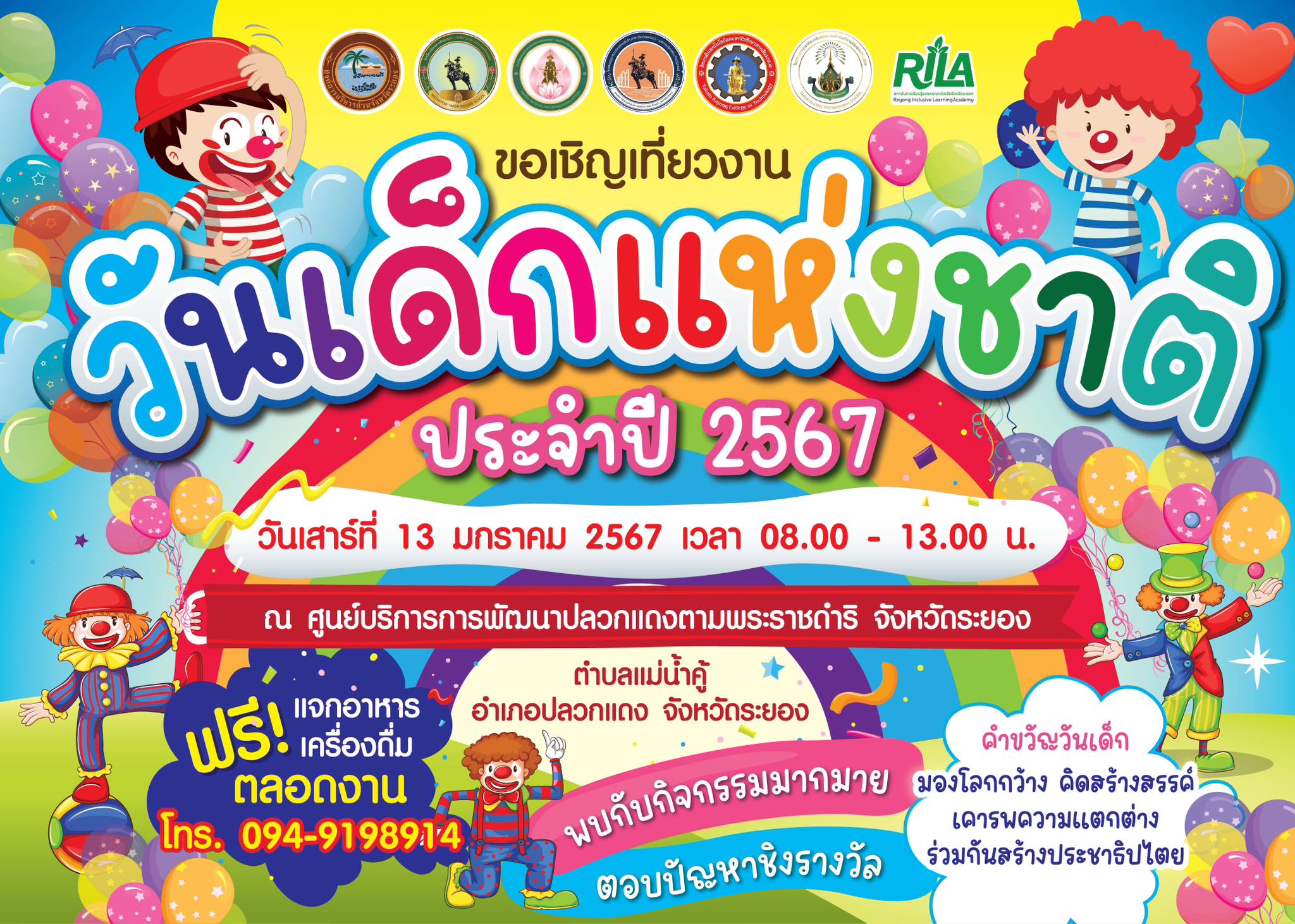 ประชาสัมพันธ์วันเด็กมาถึงแล้ว องค์การบริหารส่วนจังหวัดระยอง ขอเชิญเที่ยวงาน "วันเด็กแห่งชาติ" ในวันเสาร์ที่ 13 มกราคม 2567 เวลา 08.00 - 13.00 น. ณ ศูนย์บริการการพัฒนาปลวกแดงตามพระราชดำริ จังหวัดระยอง (อ่างเก็บน้ำดอกกราย) ลงทะเบียนเข้าร่วมกิจกรรมได้ที่ หน้างาน ลุ้นรับของรางวัล เยอะแยะมากมาย แจกอาหาร เครื่องดื่ม สำหรับน้องๆ หนูๆ ฟรี!! ตลอดงาน แล้วพบกันนะคะ ติดต่อสอบถาม : 0949198914 (เจ้าหน้าที่โครงการ)