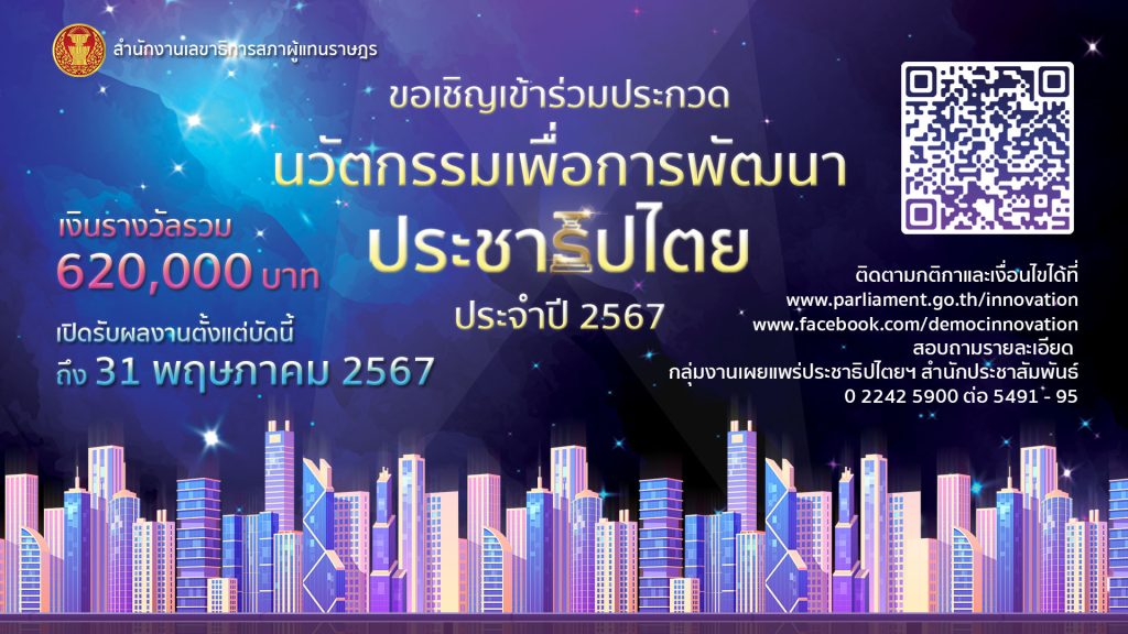 ประชาสัมพันธ์การประกวดนวัตกรรมเพื่อการพัฒนาประชาธิปไตย ปี ๒๕๖๗