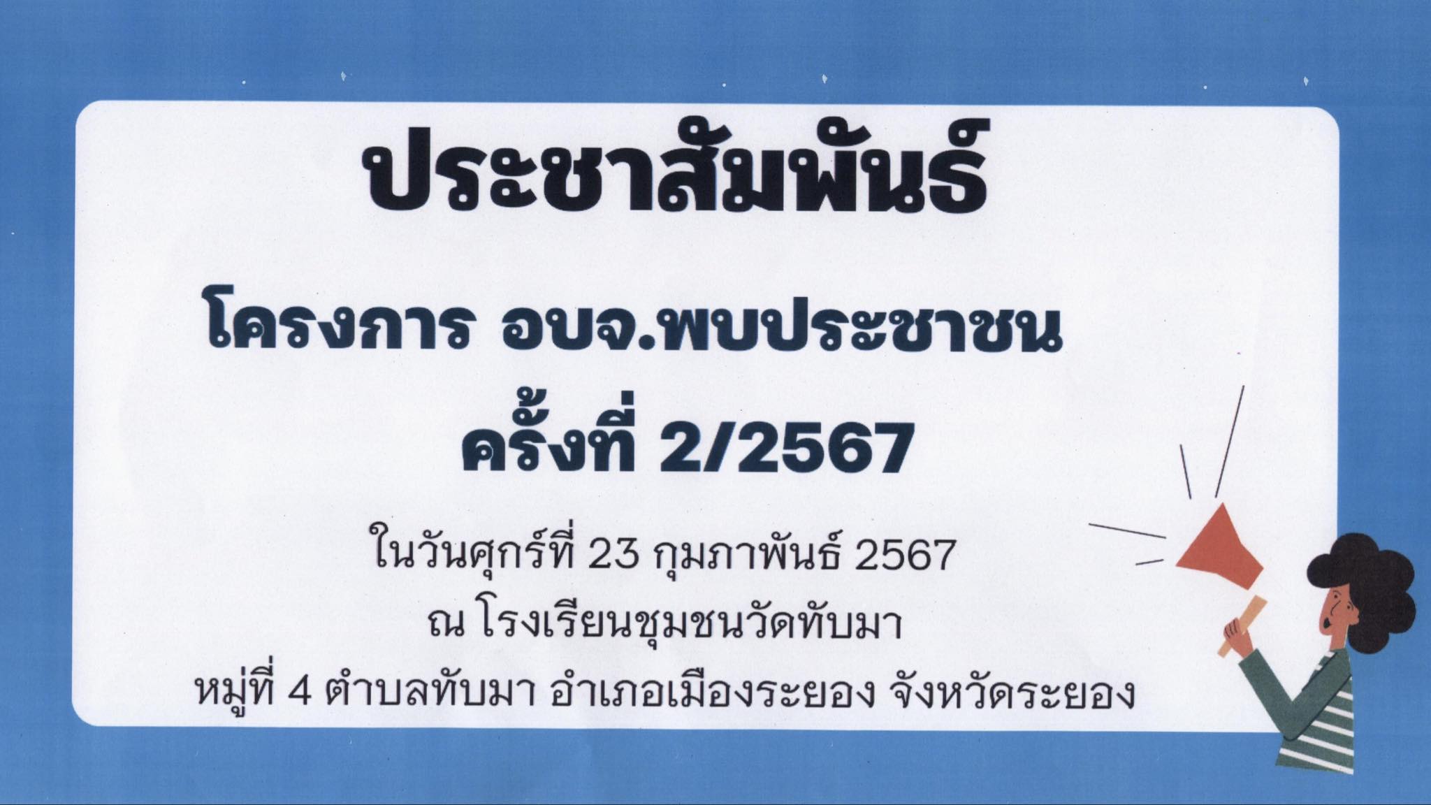 ขอเชิญชวนร่วมกิจกรรมโครงการ อบจ.พบประชาชน ครั้งที่ ๒/๒๕๖๗